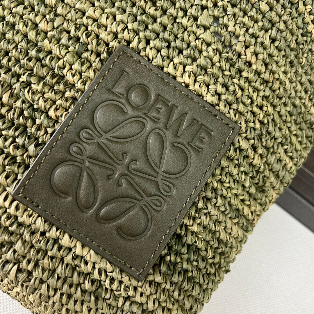 LOEWE 25S SLIT TOTE BAG 30 IN OLIVE DRAB RAFFIA CANVAS SHOULDER STRAP