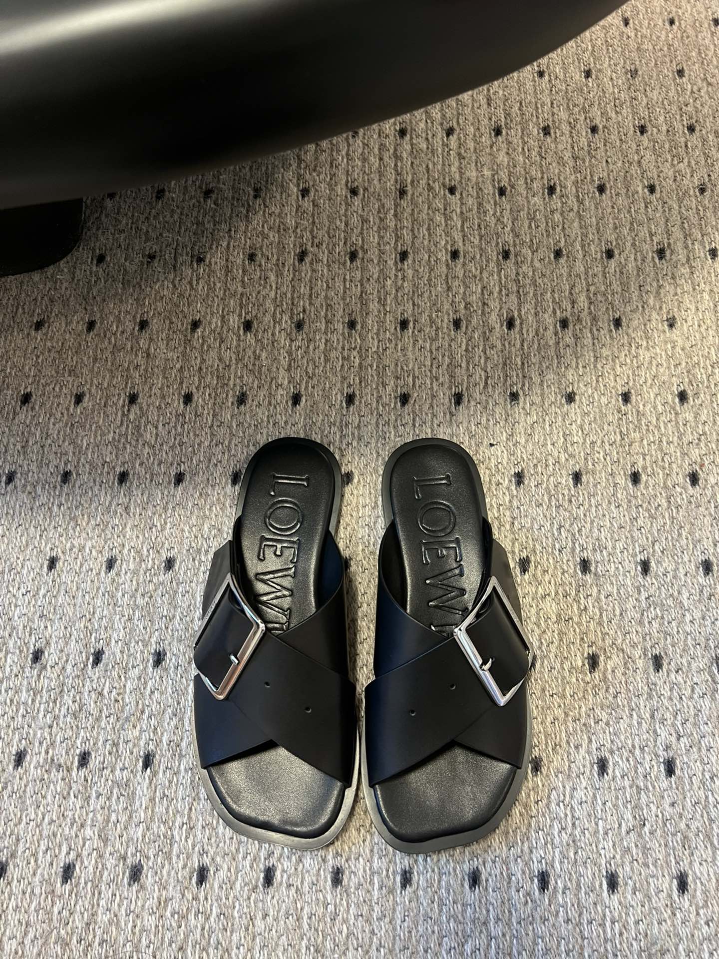 PETAL BELT FLAT SANDAL IN BLACK CALFSKIN