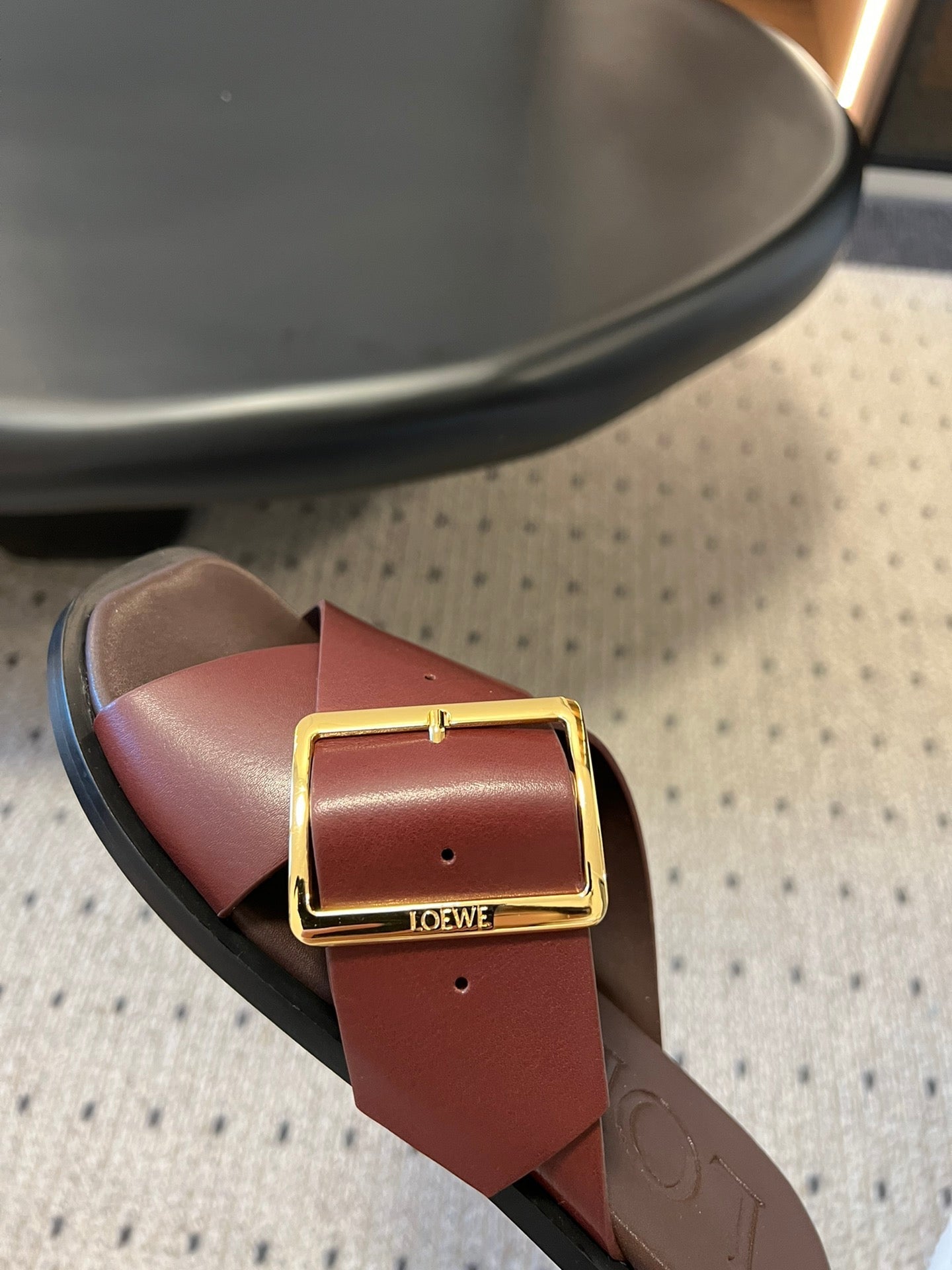 PETAL BELT FLAT SANDAL IN SANGRIA RED CALFSKIN