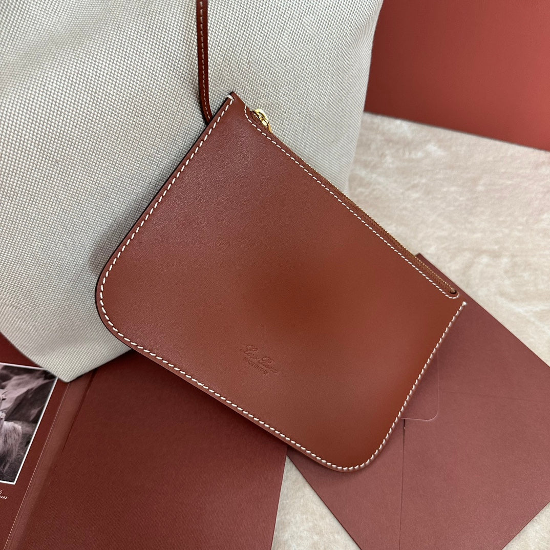 LARGE 36 BALE BAG IN WHITE CANVAS AND CHESTNUT BROWN CALFSKIN