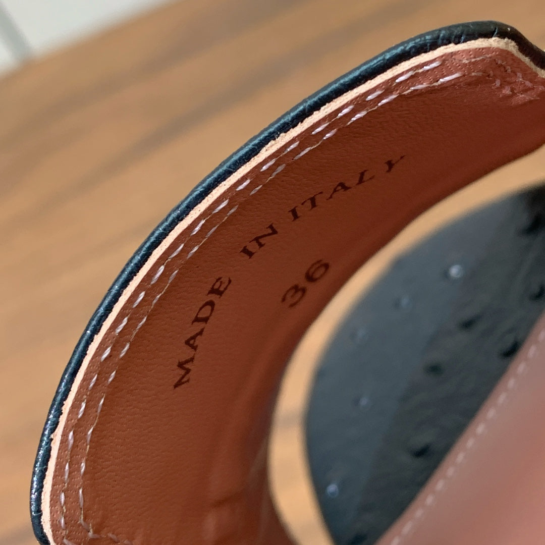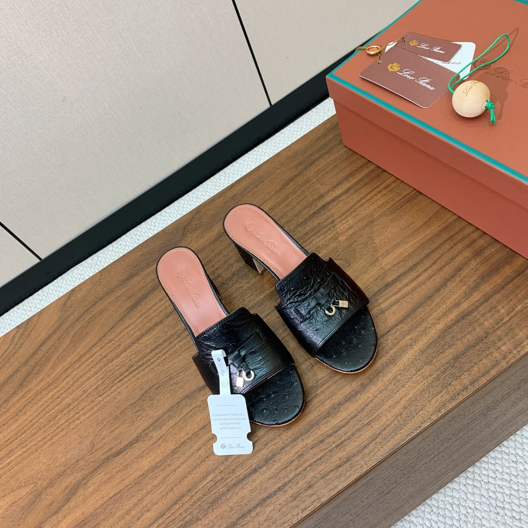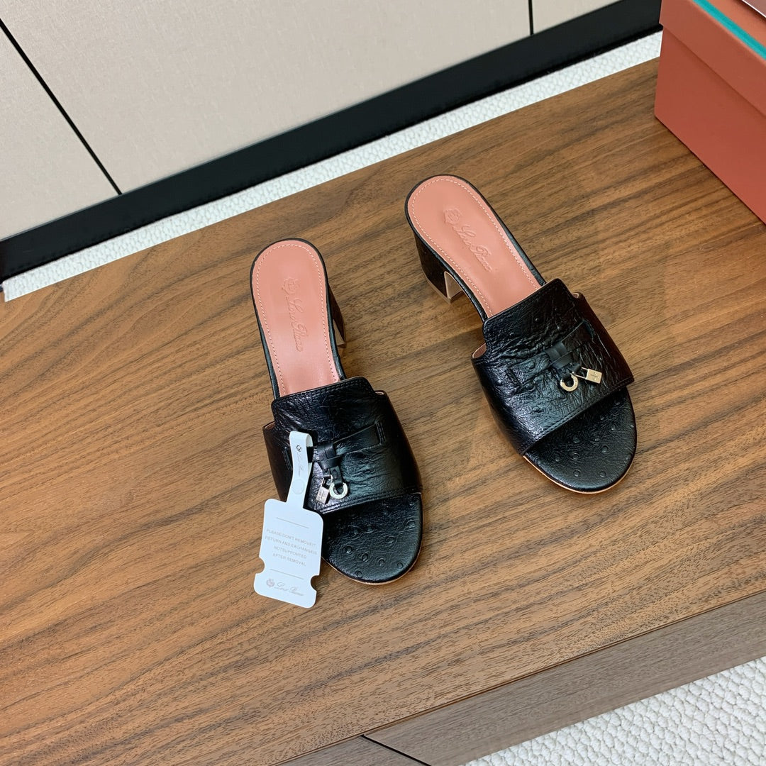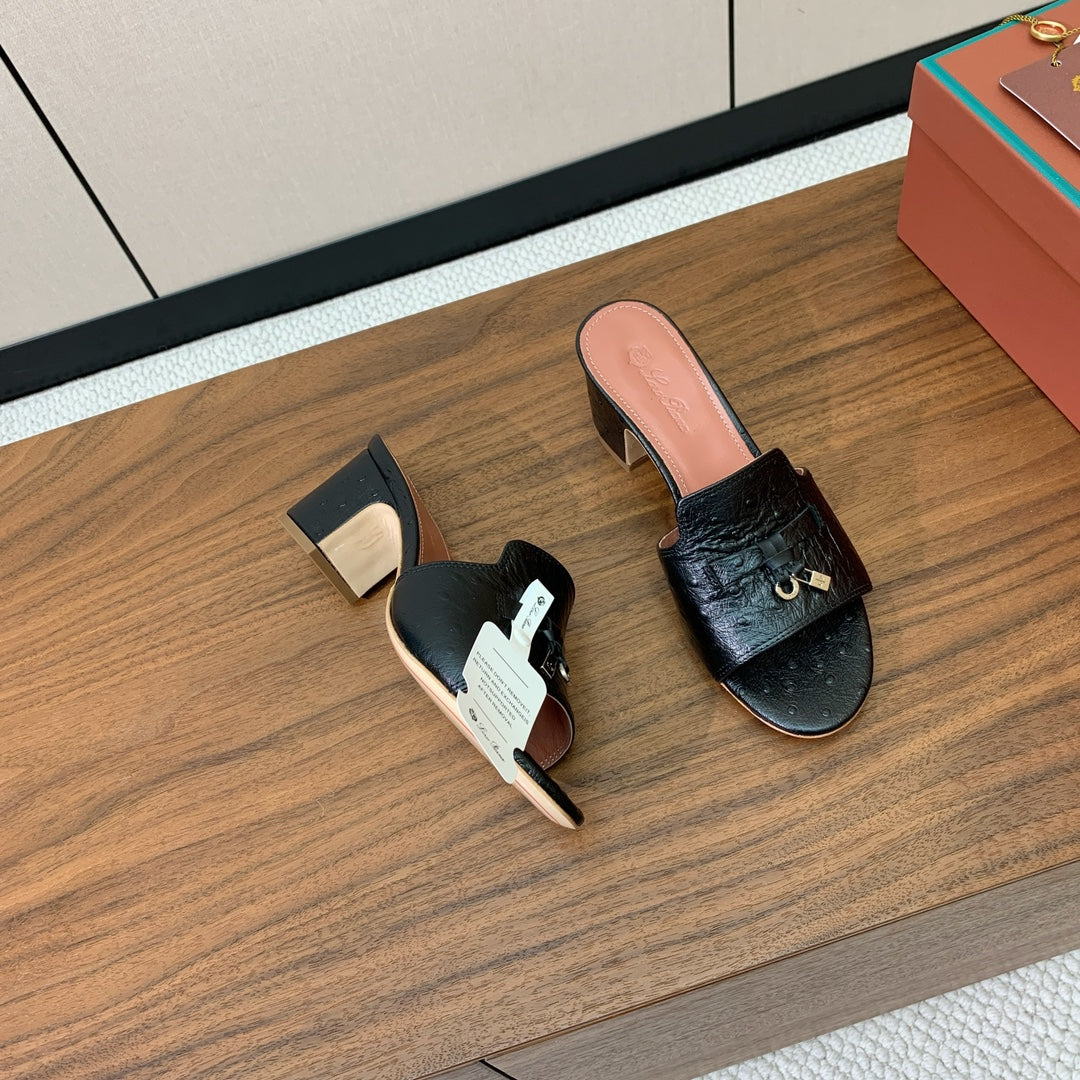 HIGH HEEL IN BLACK LAMBSKIN OSTRICH SKIN
