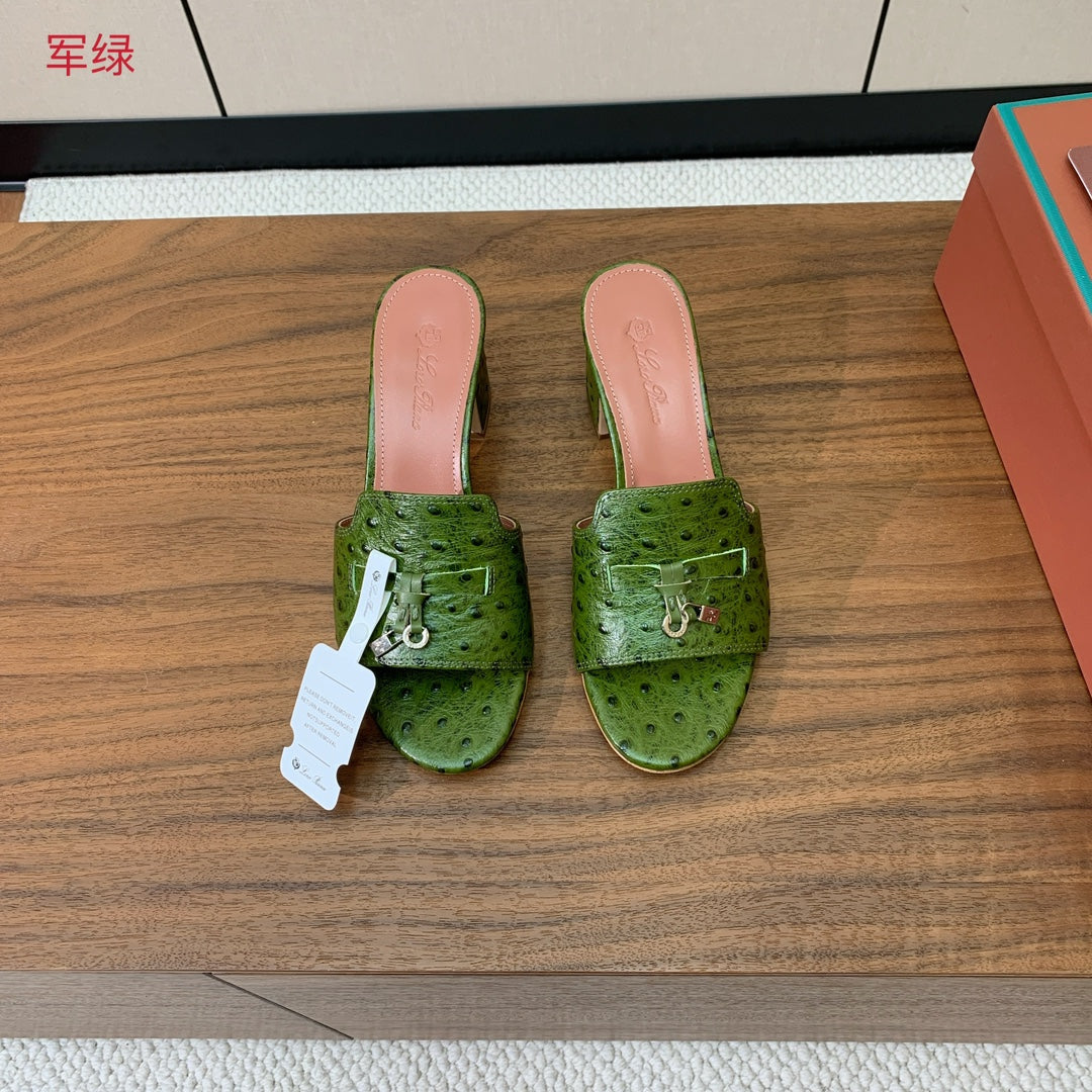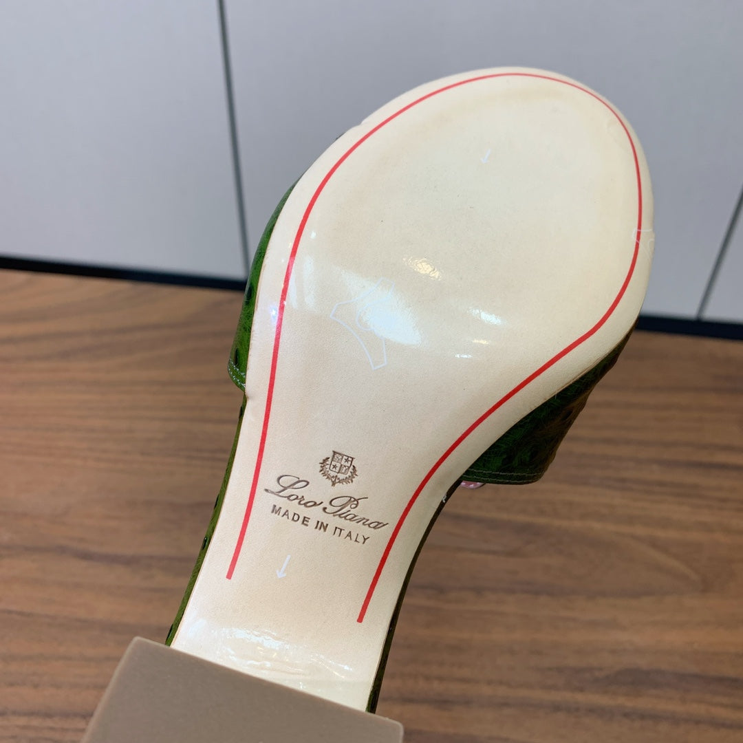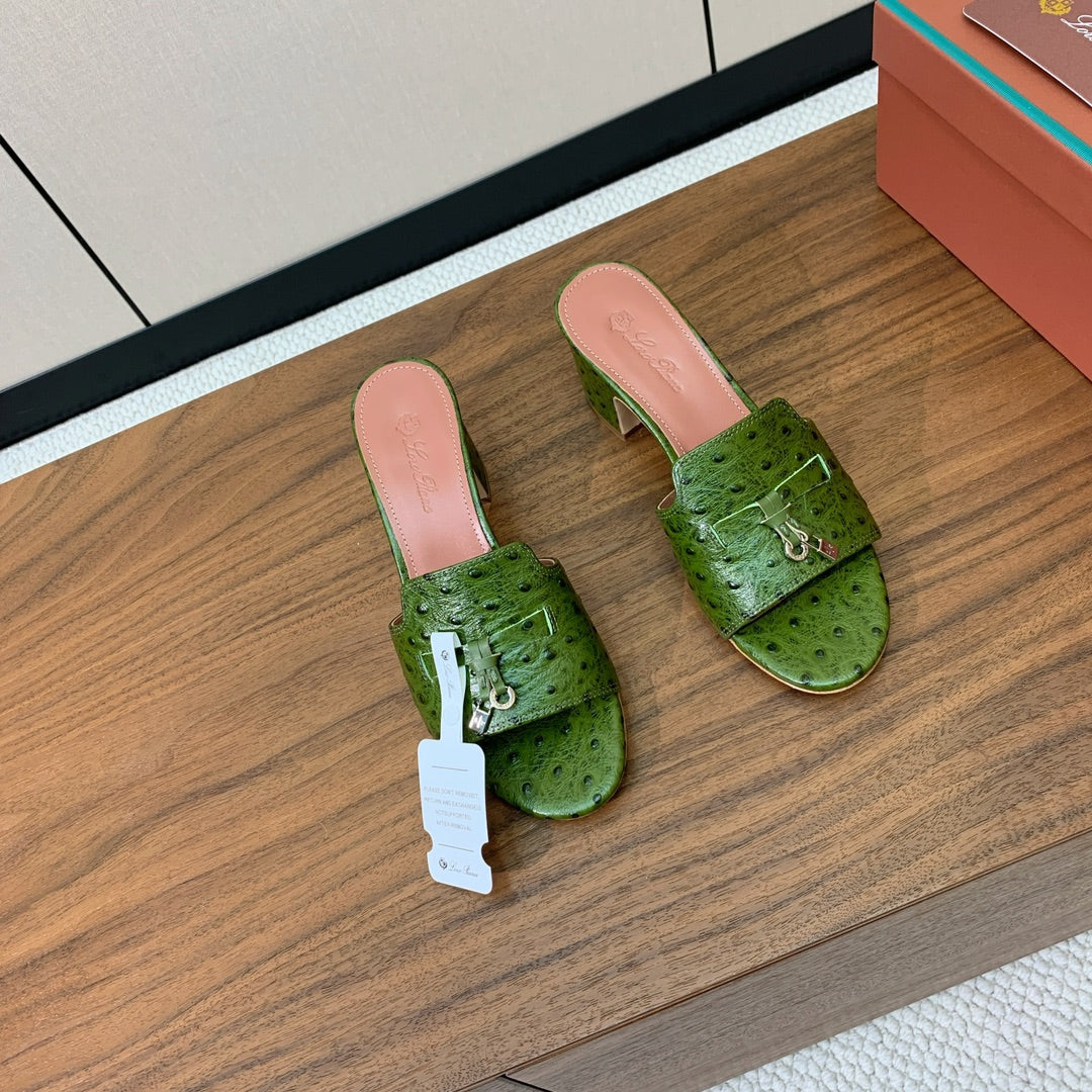 HIGH HEEL IN DARK GREEN LAMBSKIN OSTRICH SKIN