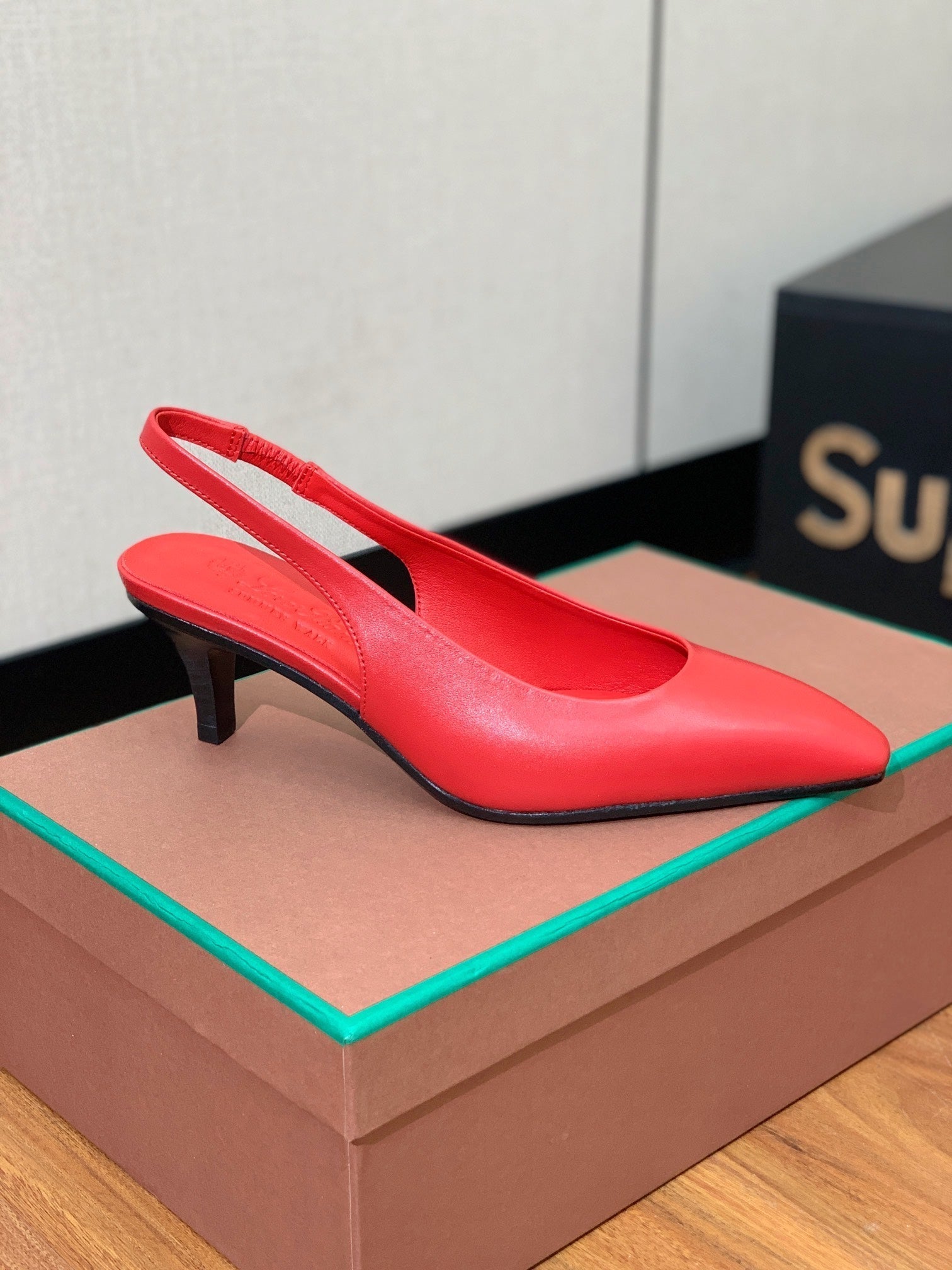 LP POINTED TOE MID-HEEL SLINGBACK ROSE CALFSKIN
