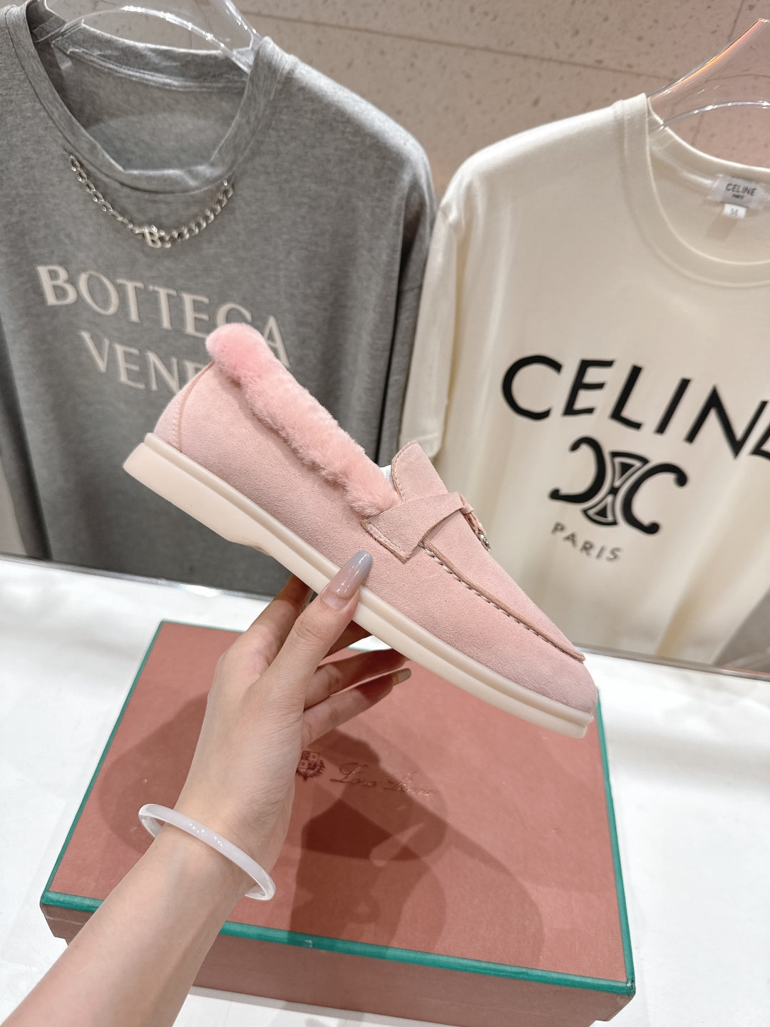 LP 25S SUMMER CHARMS WALK LOAFERS IN BABY PINK SUEDE AND FLEECE