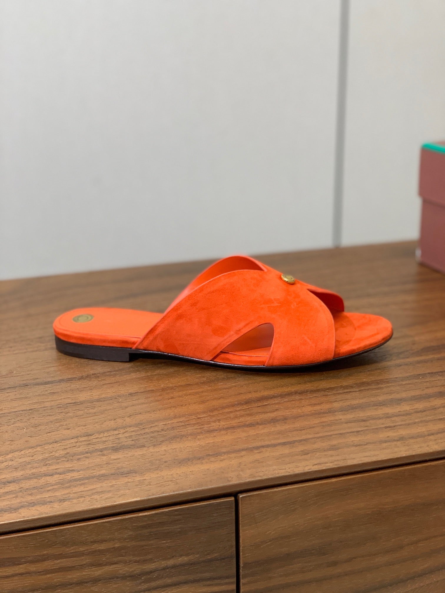 FLAT SLIPPERS IN ORANGE SUEDE