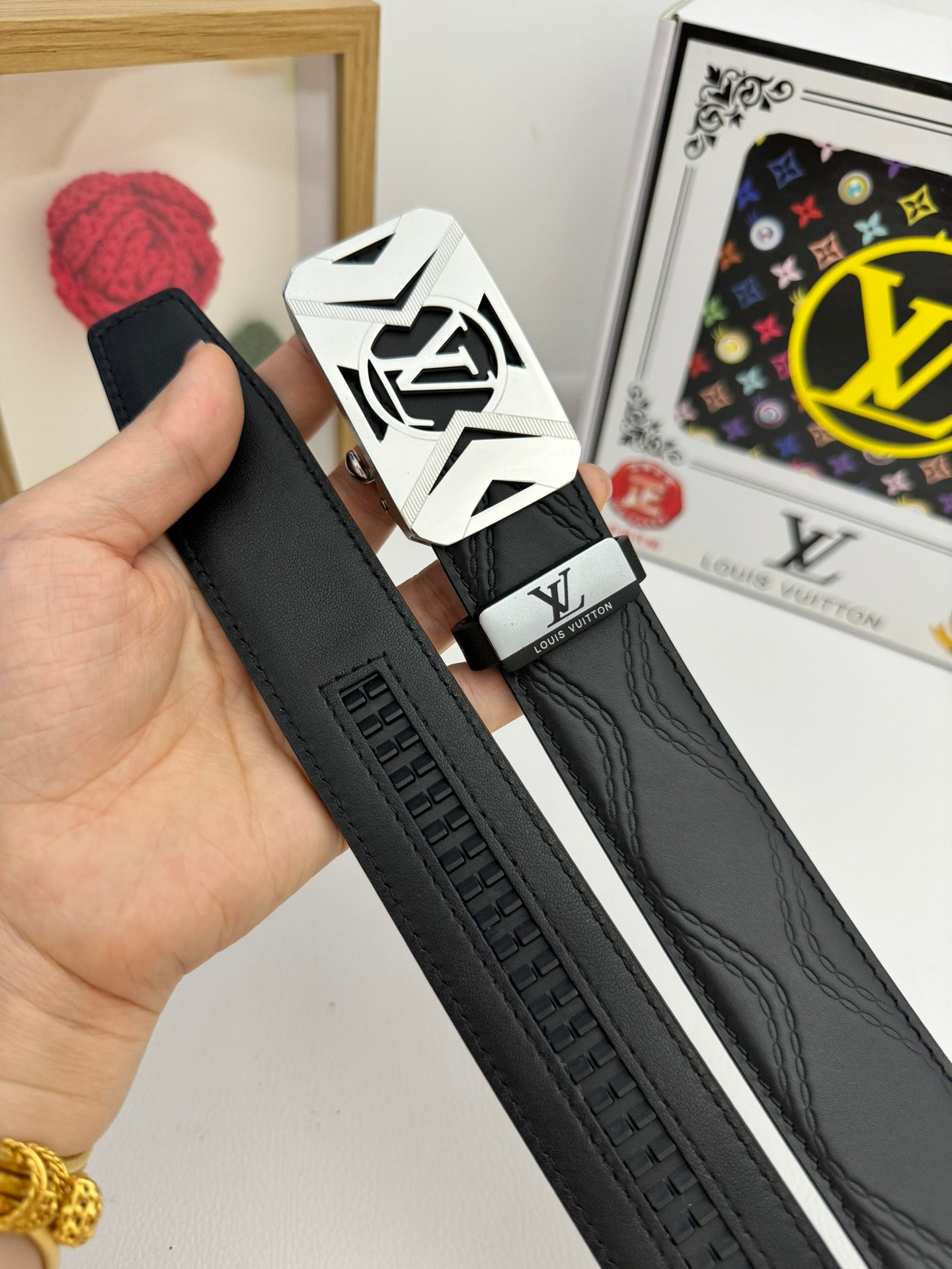 LV 25S BELT 35 MM IN BLACK CALFSKIN 593218