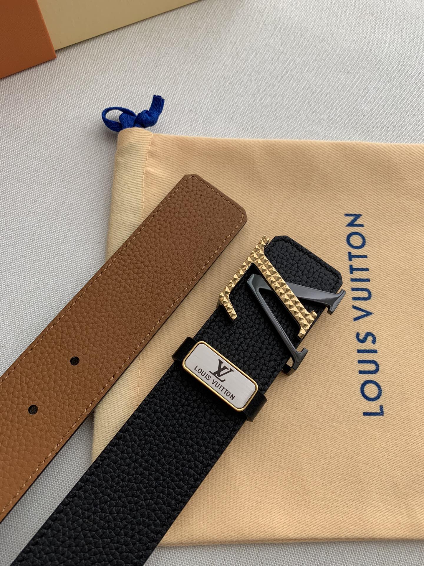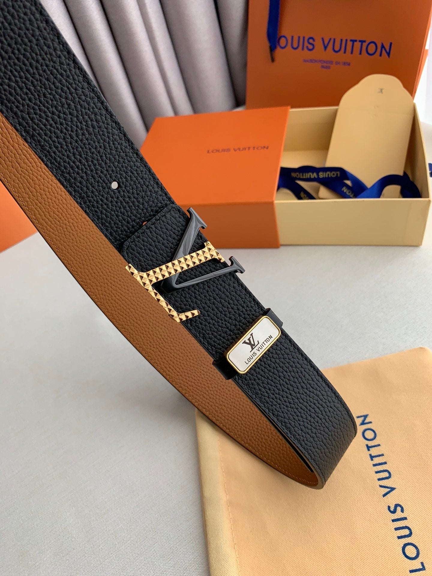 LV 25S BELT 38 MM IN BLACK CALFSKIN 593212