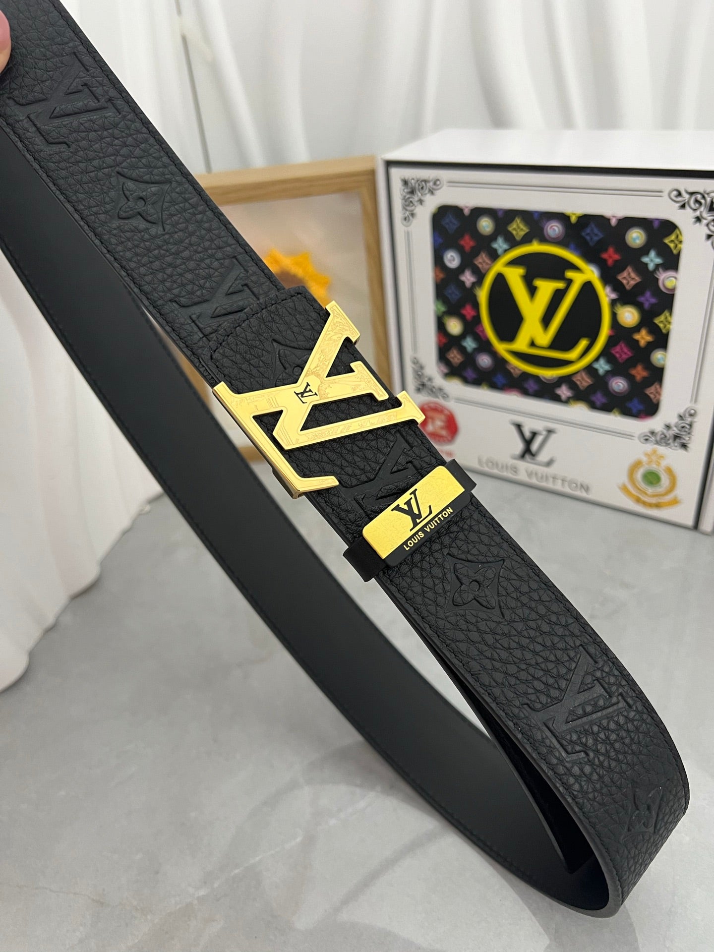 LV 25S BELT 38 MM IN BLACK CALFSKIN 593284