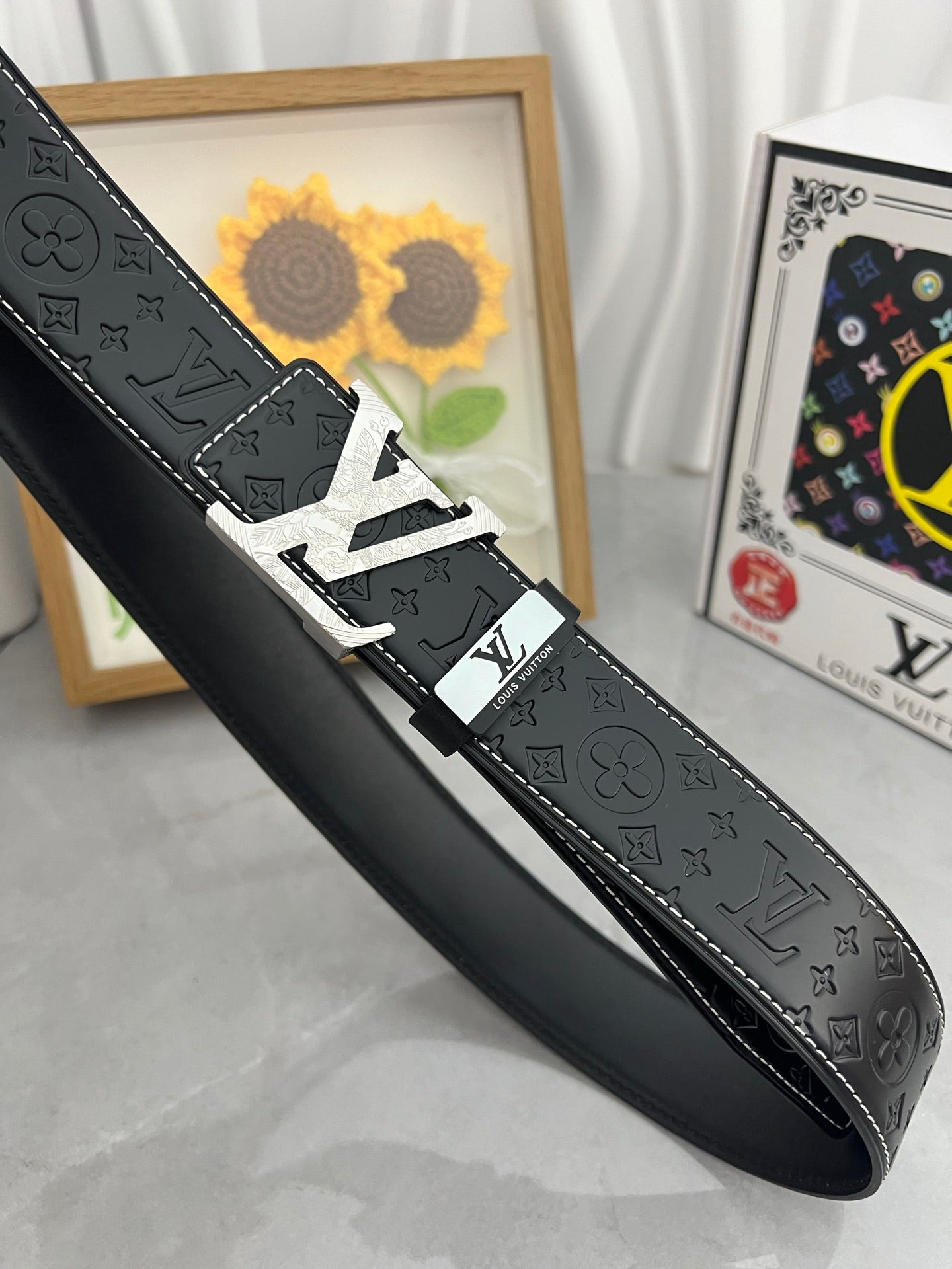 LV 25S BELT 38 MM IN BLACK CALFSKIN STAMP LOGO 593292