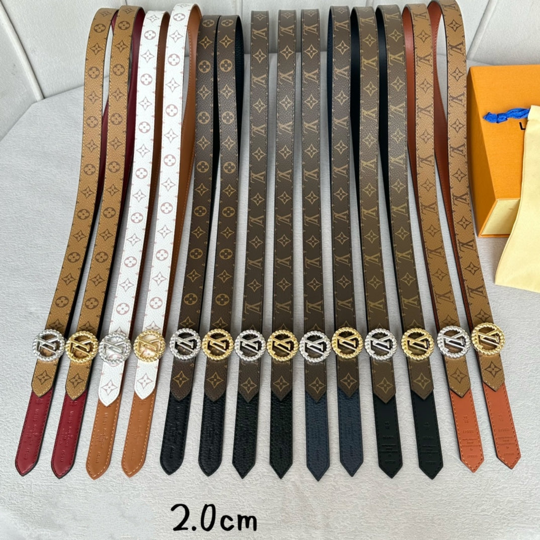 LV Circle Nautical 20mm Reversible Belt Gold Buckle Black Brown Lambskin