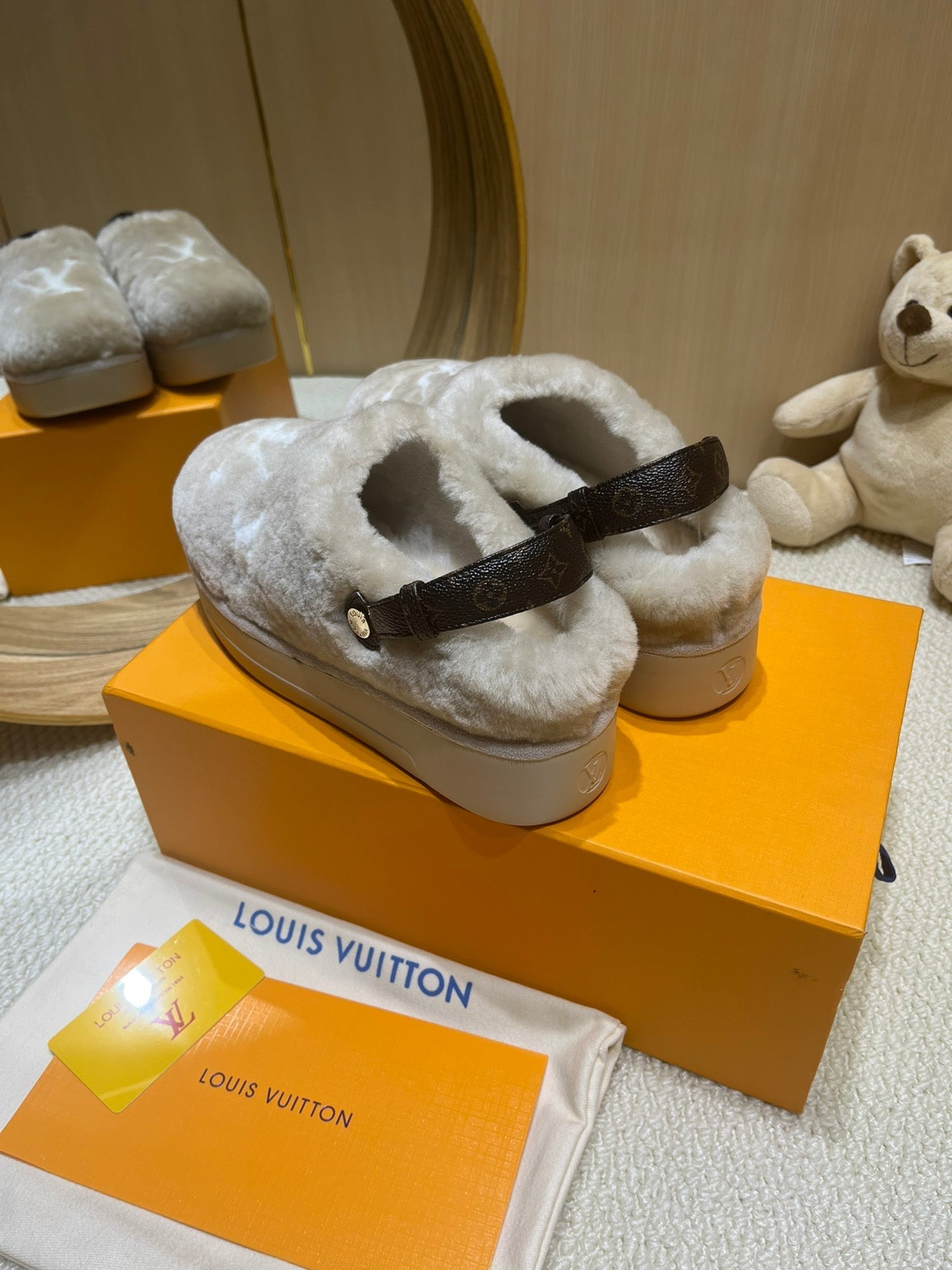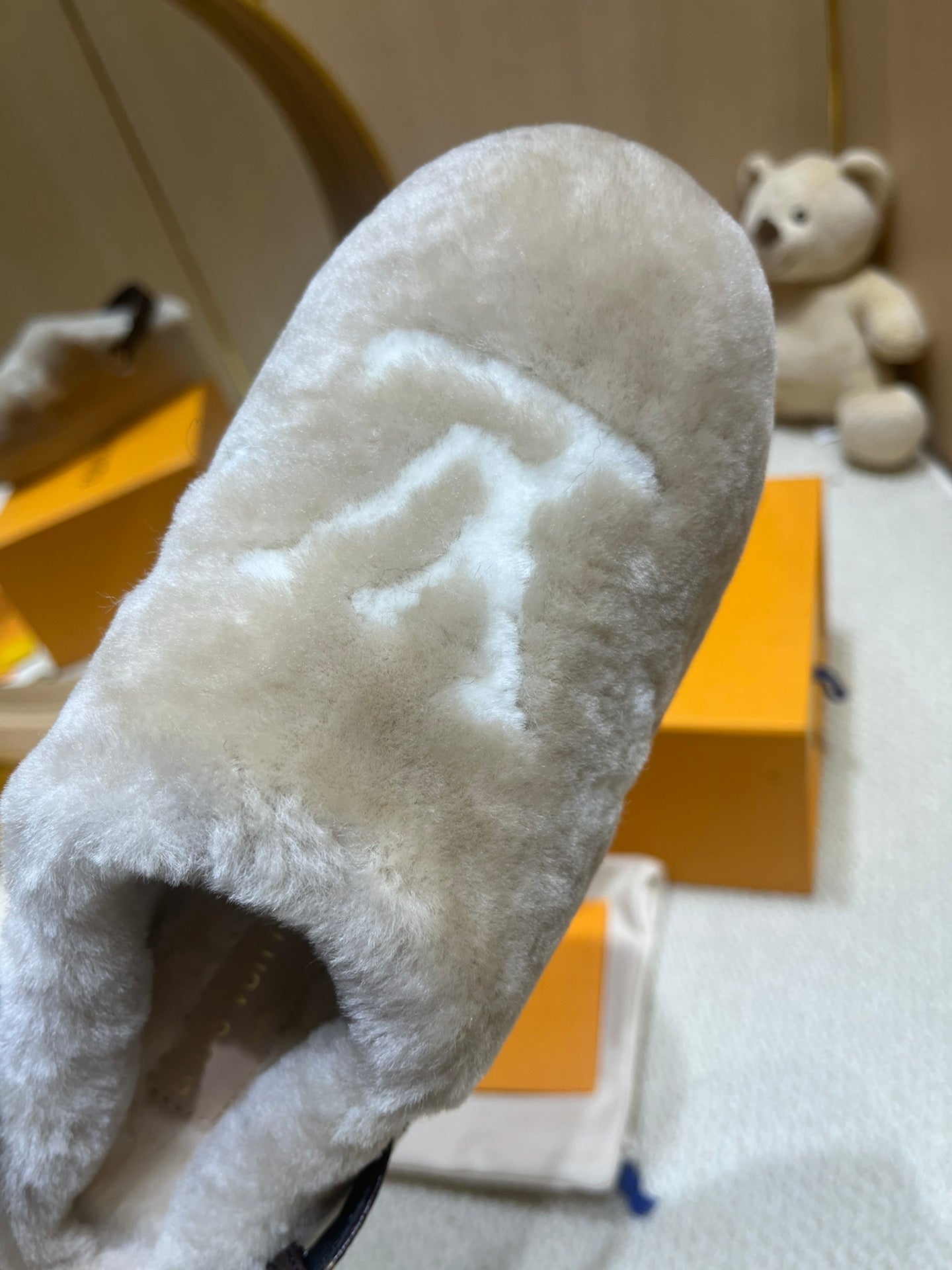 ASPEN COMFORT CLOG IN KHAKI BEIGE MIX WHITE FLEECE