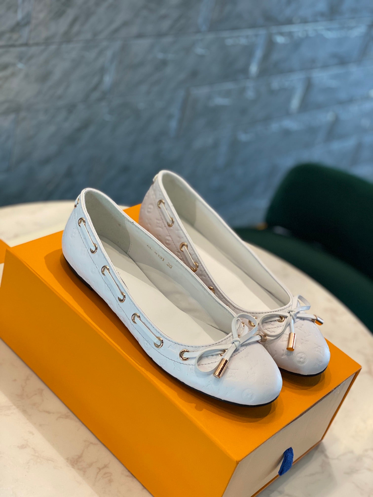LV WOMEN'S BALLET FLAT IN WHITE EMBOSSED CALFSKIN WITH BOW