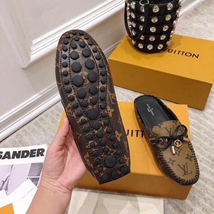 LV WOMEN'S EASY MULE IN CAMEL BROWN MONOGRAM CALFSKIN