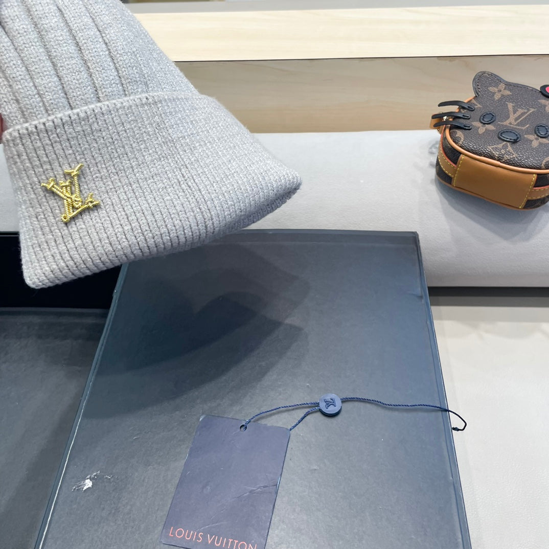 KNITTED BEANIE HAT IN LIGHT GRAY WOOL AND FOX FUR 409791