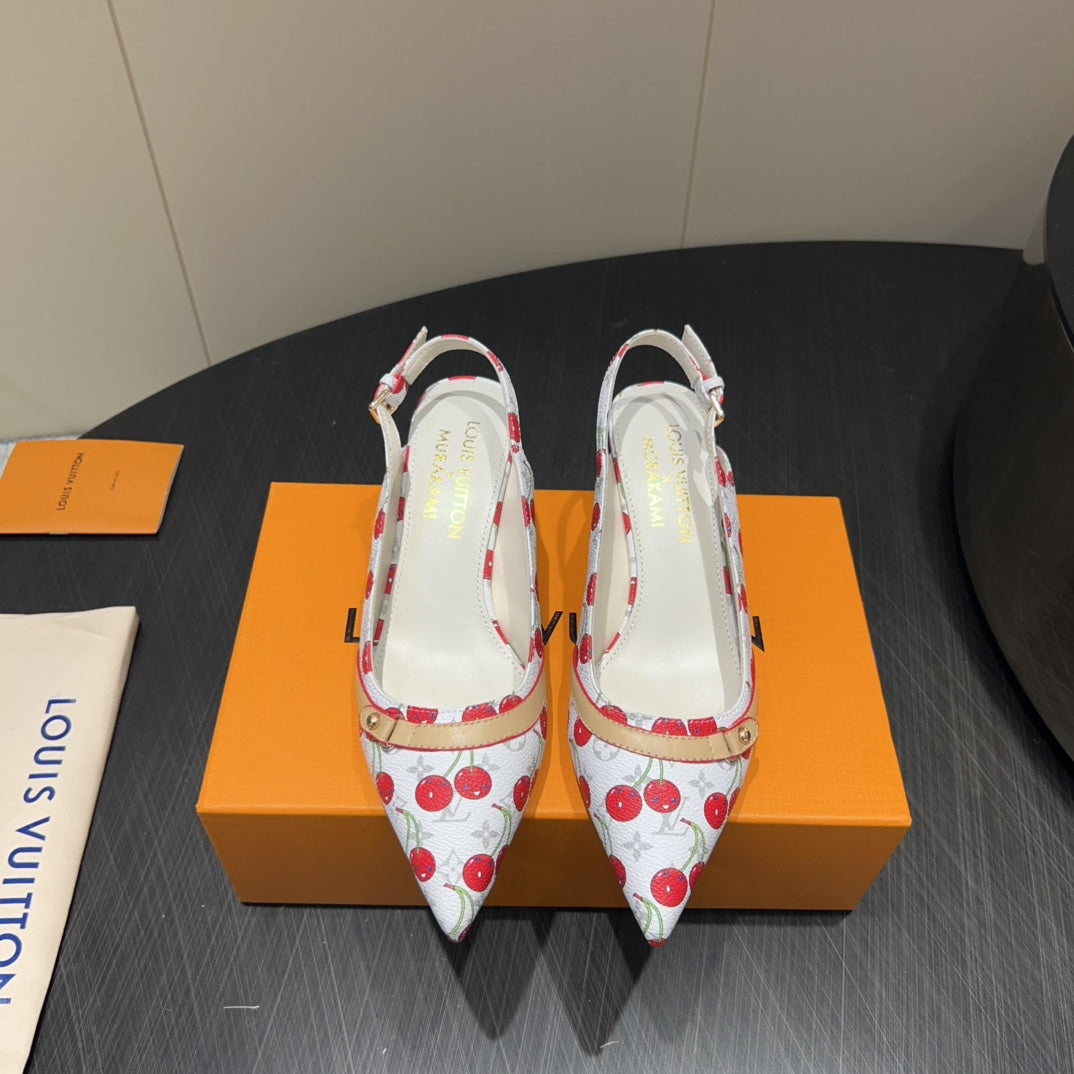 LV HIGH SLINGBACK LOGO AND CHERRY PRINT 25S 55 MM IN WHITE CALFSKIN
