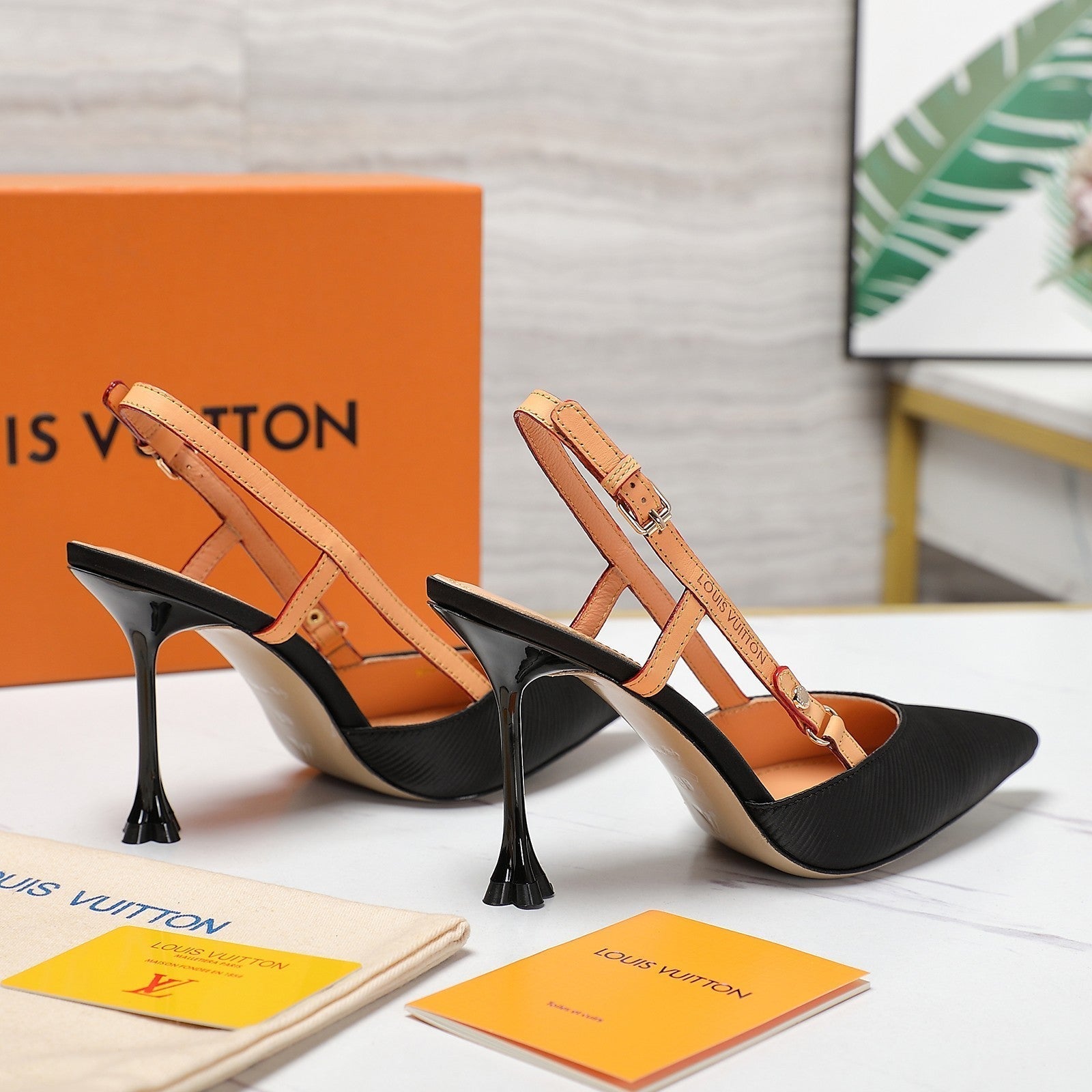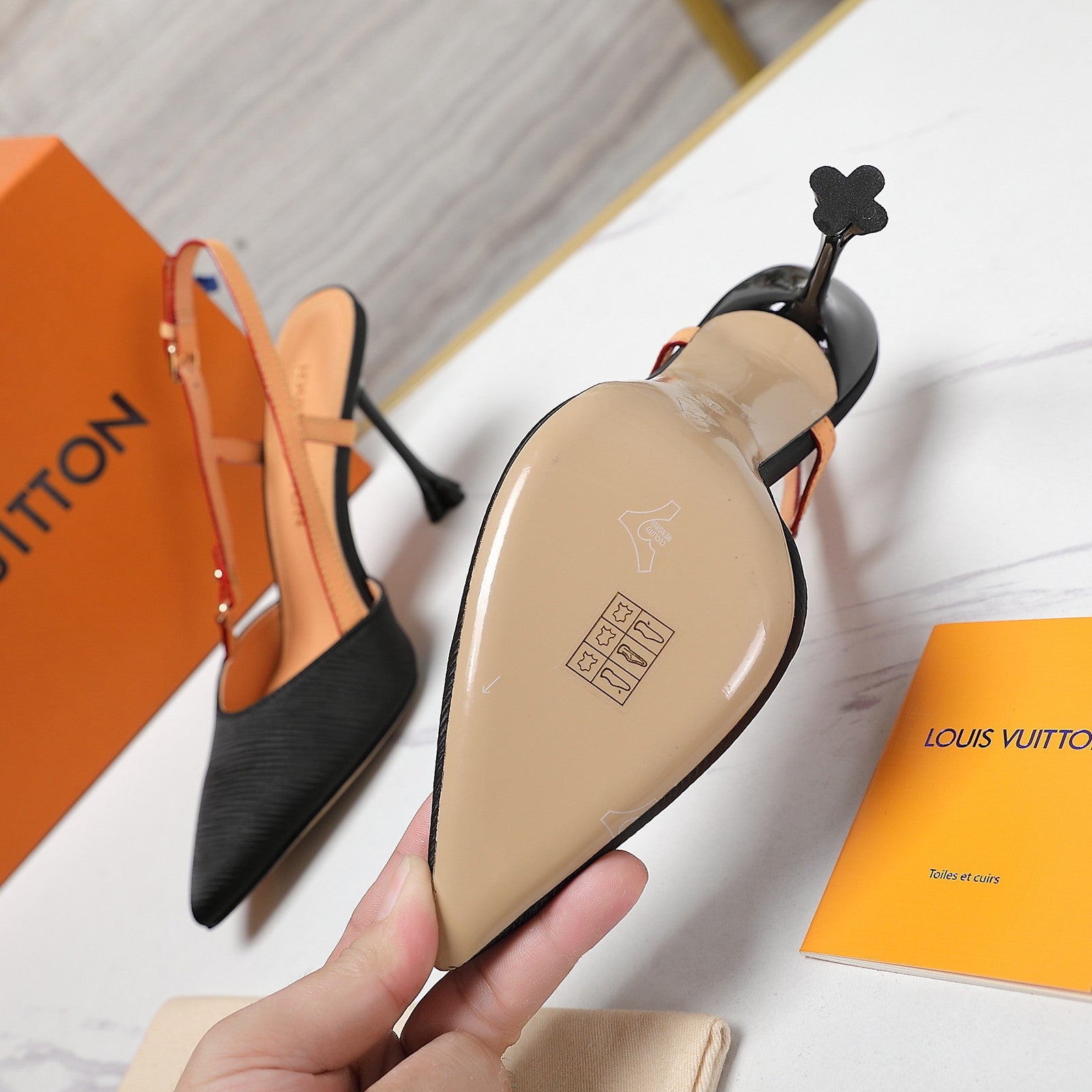 LV WOMEN BLOSSOM SLINGBACK PUMP IN BLACK EMBROIDERED FABRIC