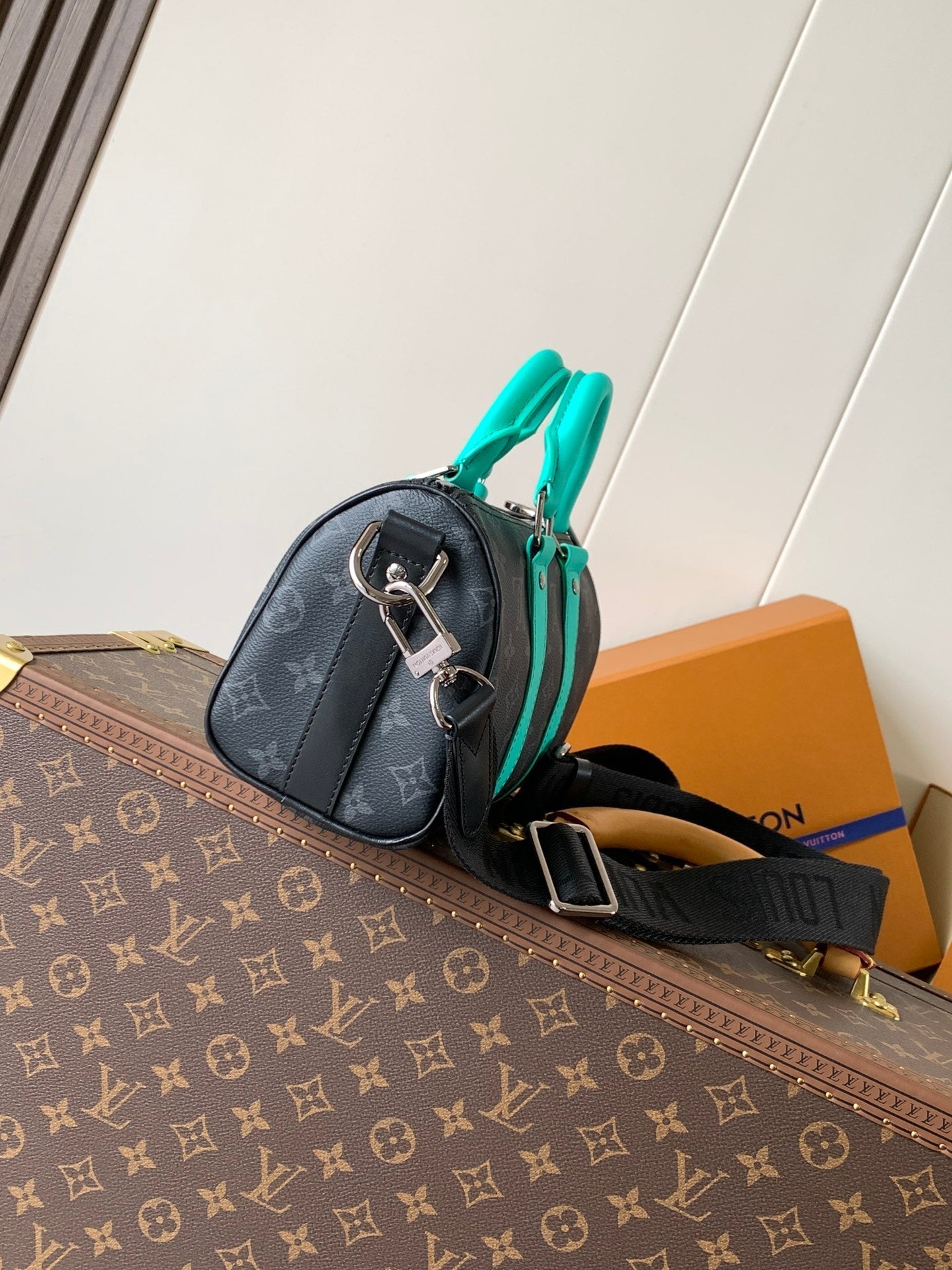 LV 25S KEEPALL 25 WITH SHOULDER STRAP IN BLACK AQUA COATED MONOGRAM ECLIPSE CANVAS AND CALFSKIN