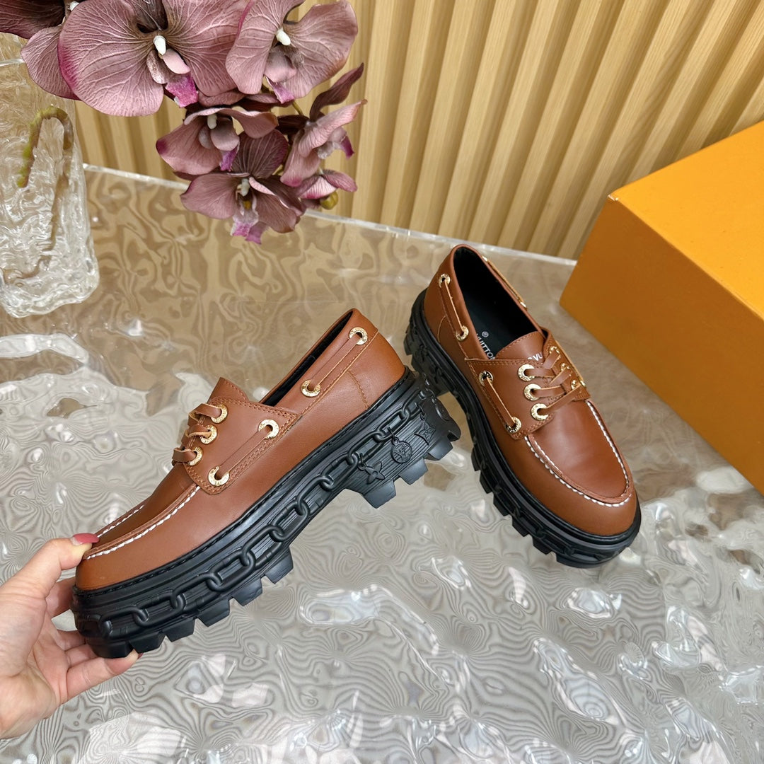LV RECORD BOAT SHOE IN BRONZE BROWN GLOSSY CALFSKIN