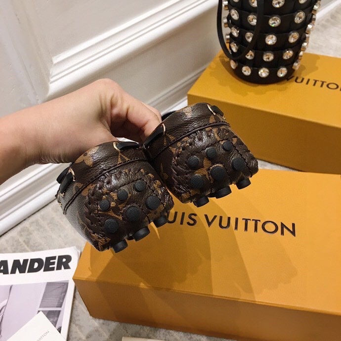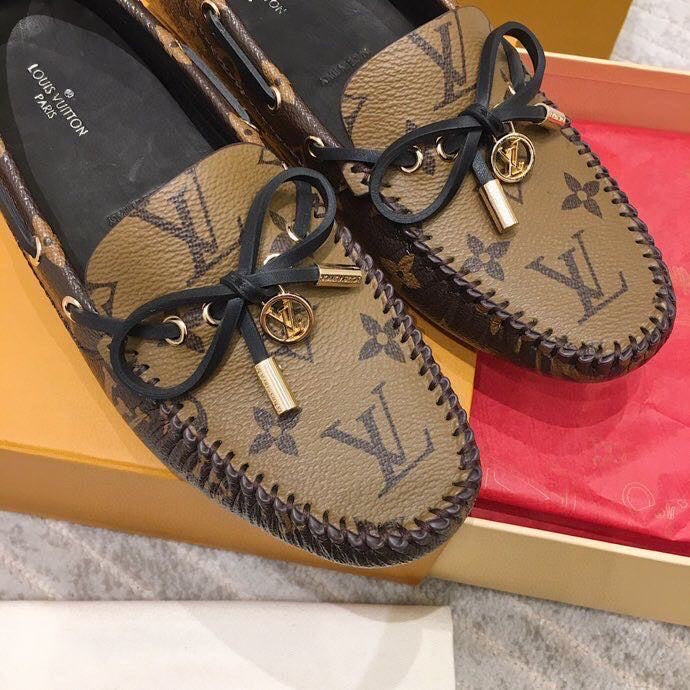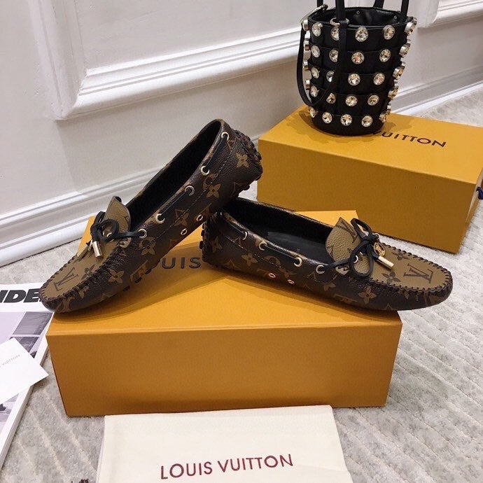 LV WOMEN'S DRIVER MOCCASIN IN CAMEL BROWN MONOGRAM CALFSKIN