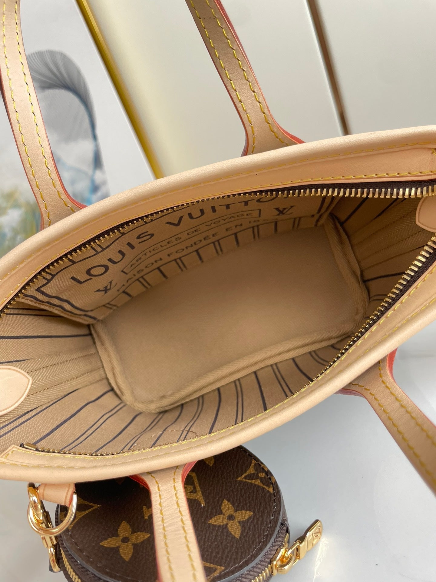 NEVERFULL BB 24 BROWN MONOGRAM CANVAS AND LEATHER TRIM GOLD HARDWARE