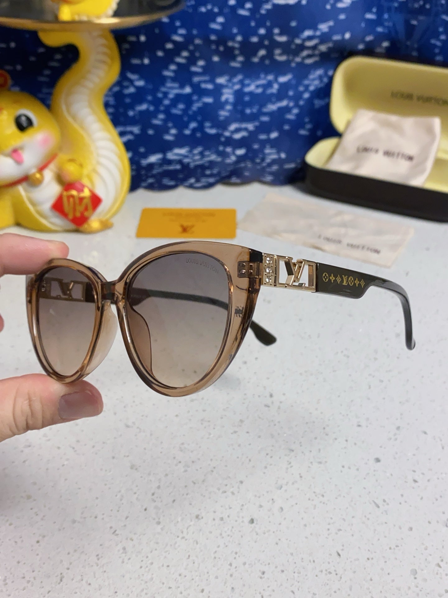 CAT EYE SUNGLASSES 567468 IN BROWN CLEAR ACETATE