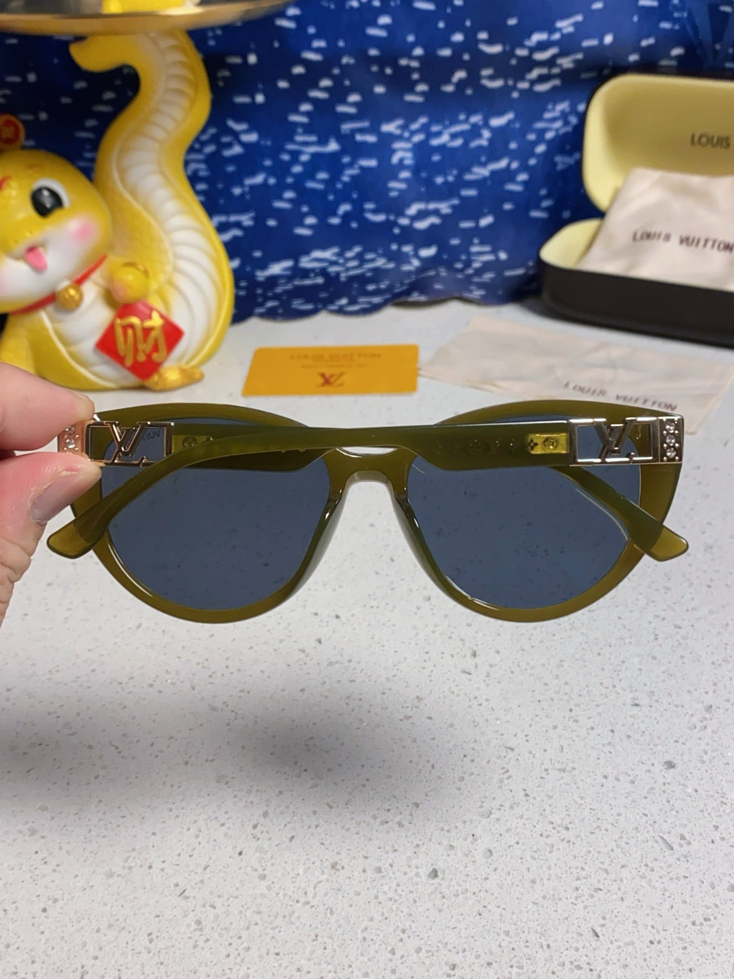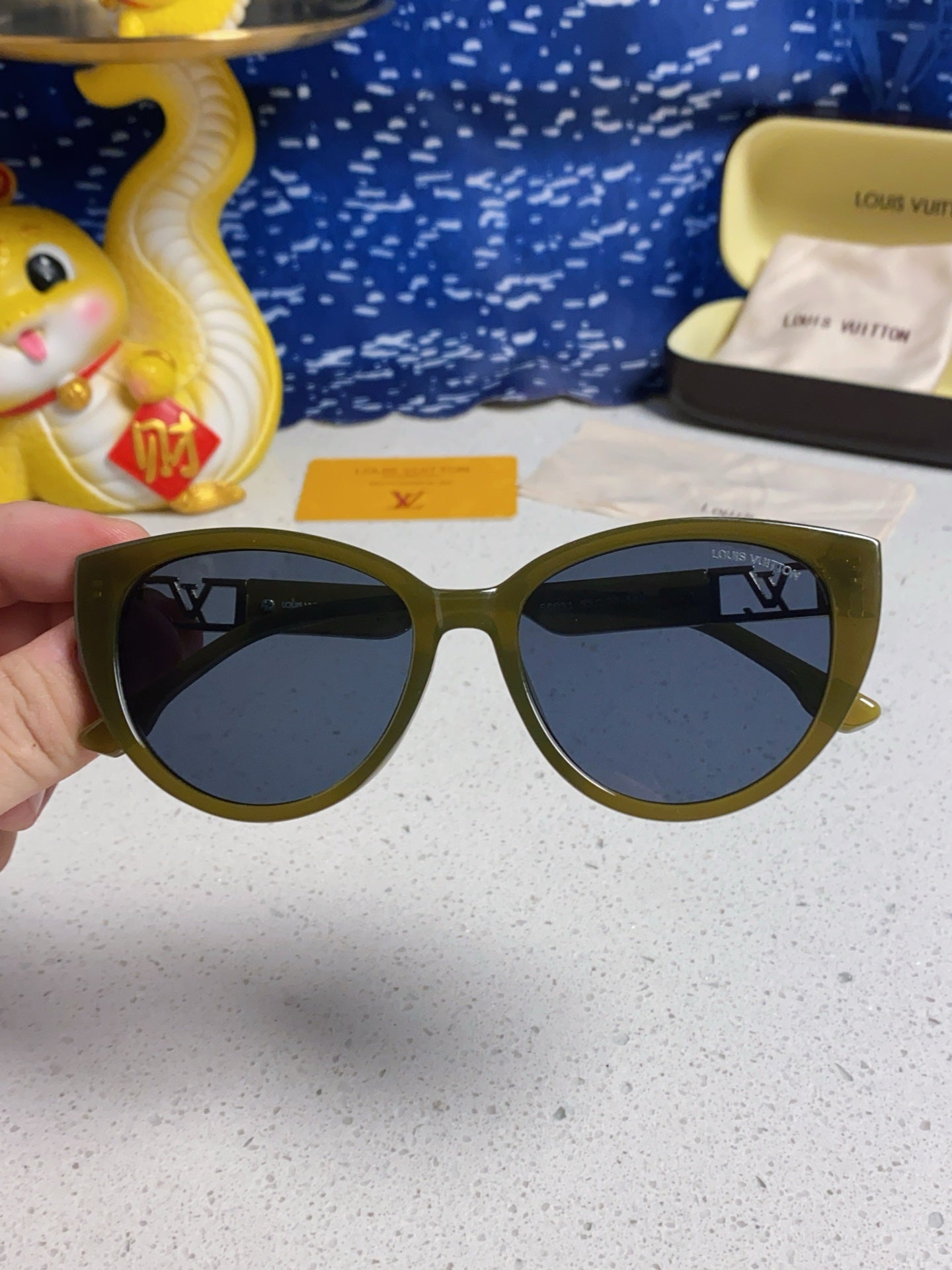 CAT EYE SUNGLASSES 567469 IN GREEN CLEAR ACETATE