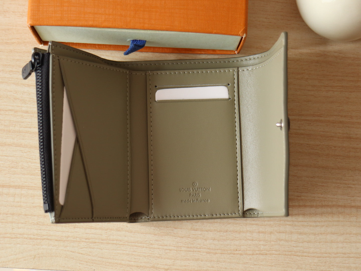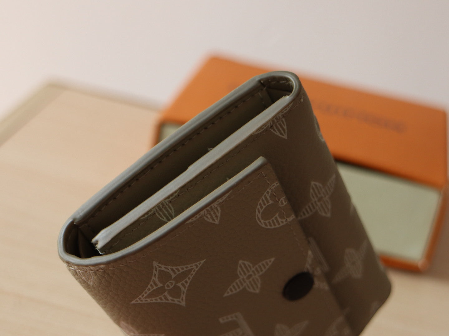 IRIS WALLET IN KHAKI BROWN EMBOSSED CALFSKIN