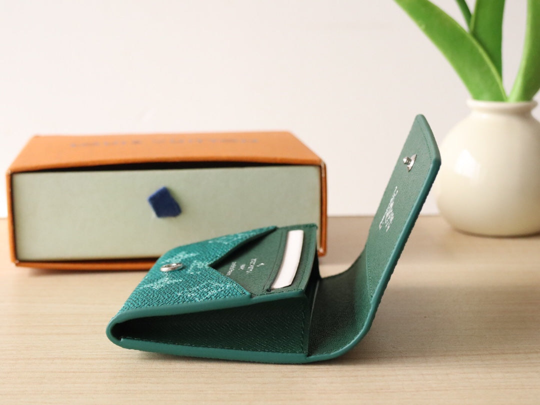 LV 25S ENVELOPE BUSINESS CARD HOLDER 10 IN DEEP TEAL MONOGRAM HERITAGE COATED CALFSKIN