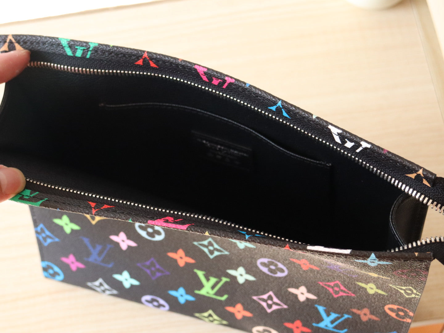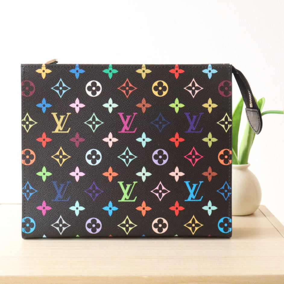 TOILETRY POUCH 25 IN BLACK MIX COLORFUL CALFSKIN
