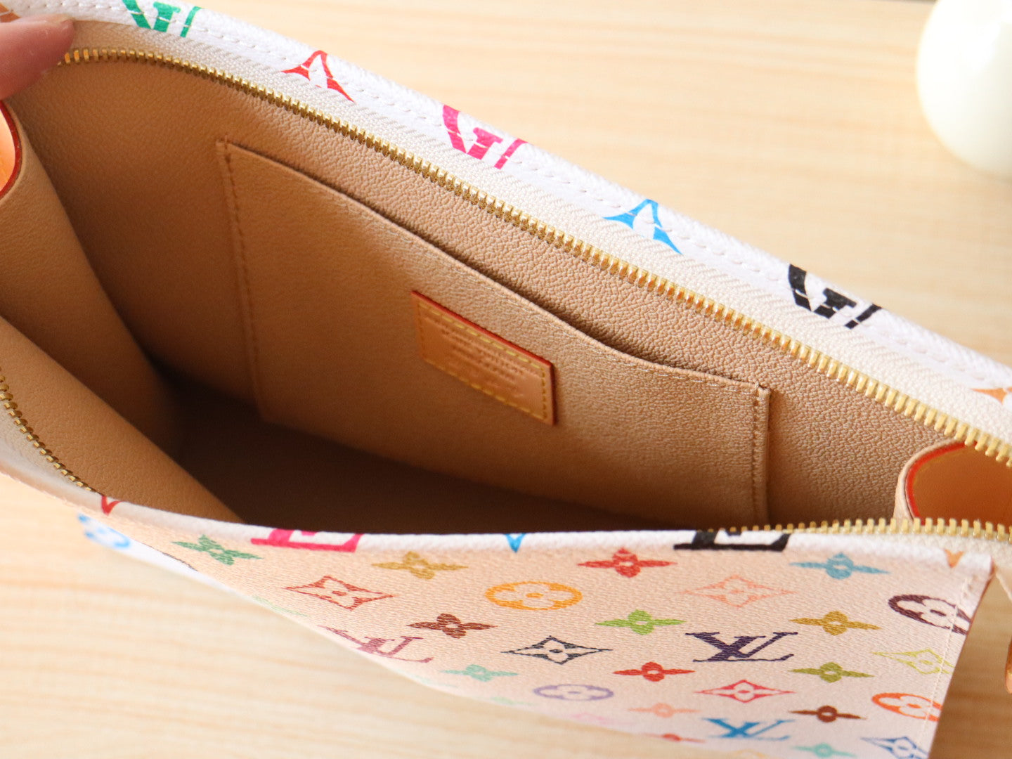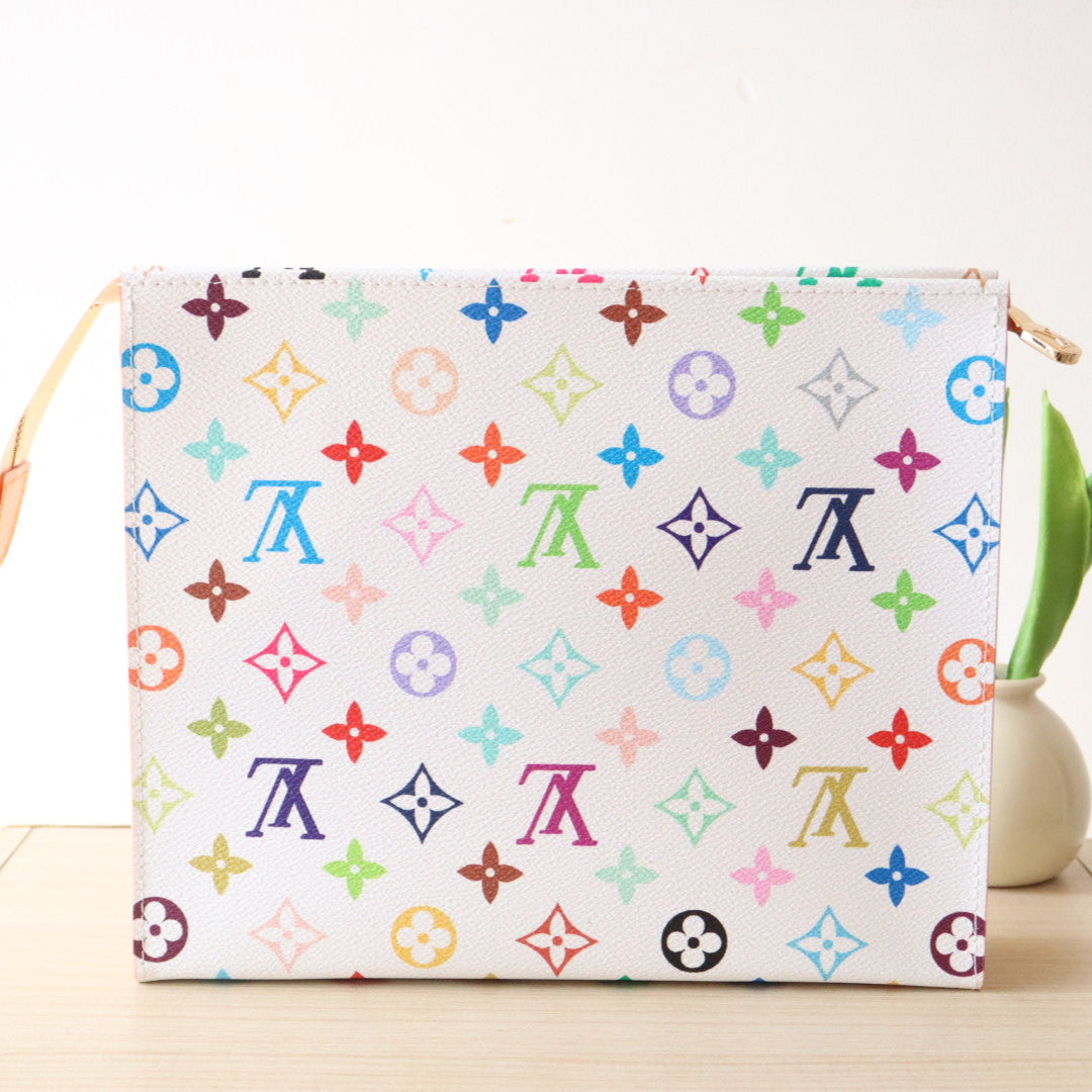 TOILETRY POUCH 25 IN WHITE MIX COLORFUL CALFSKIN