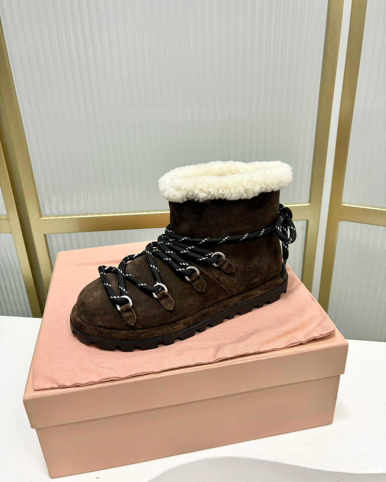 LACE-UP ANKLE BOOTS IN CHOCOLATE SUEDE AND FLEECE LINING