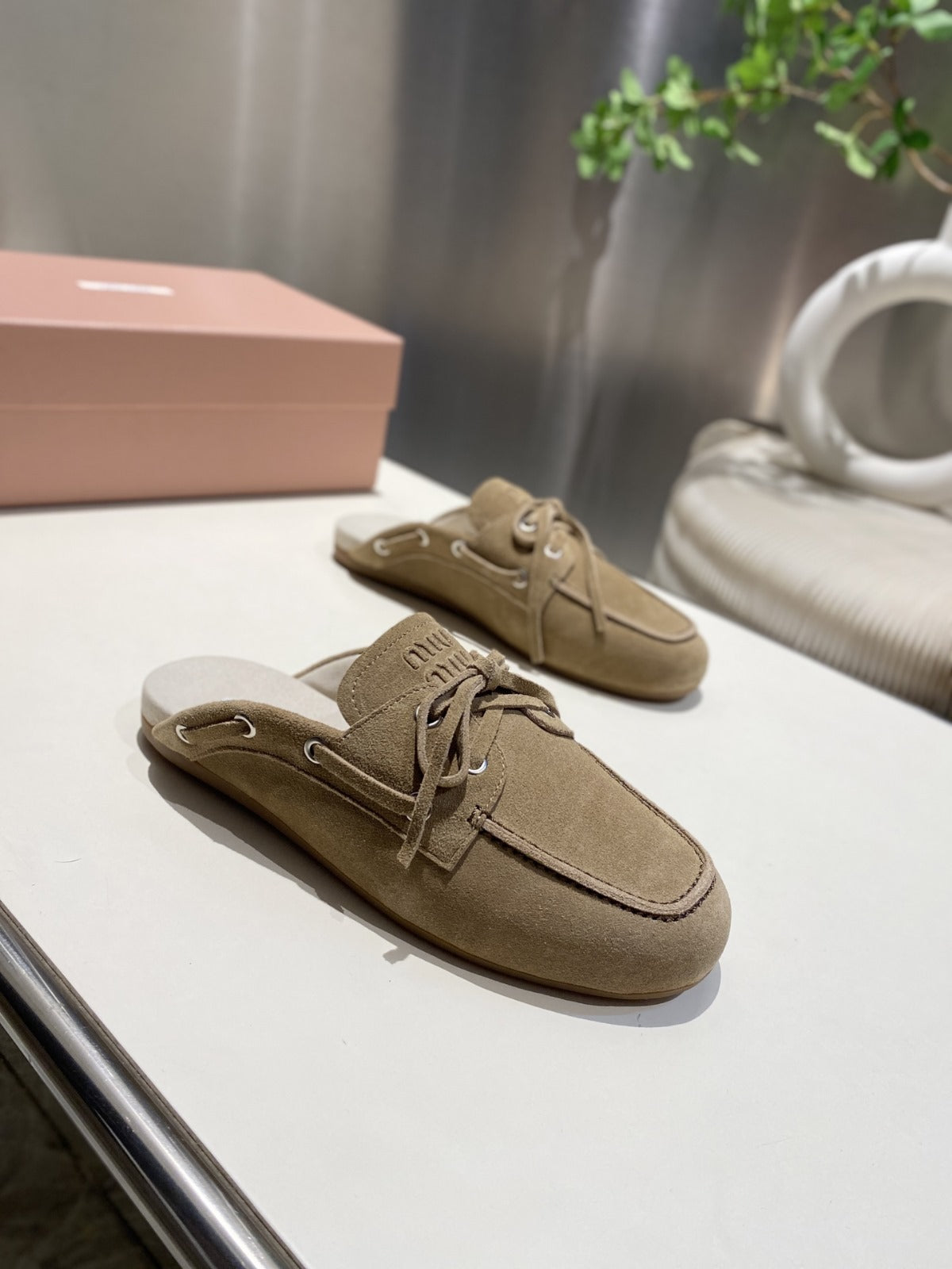 MIU FADED MULE IN LIGHT BROWN ECRU SUEDE