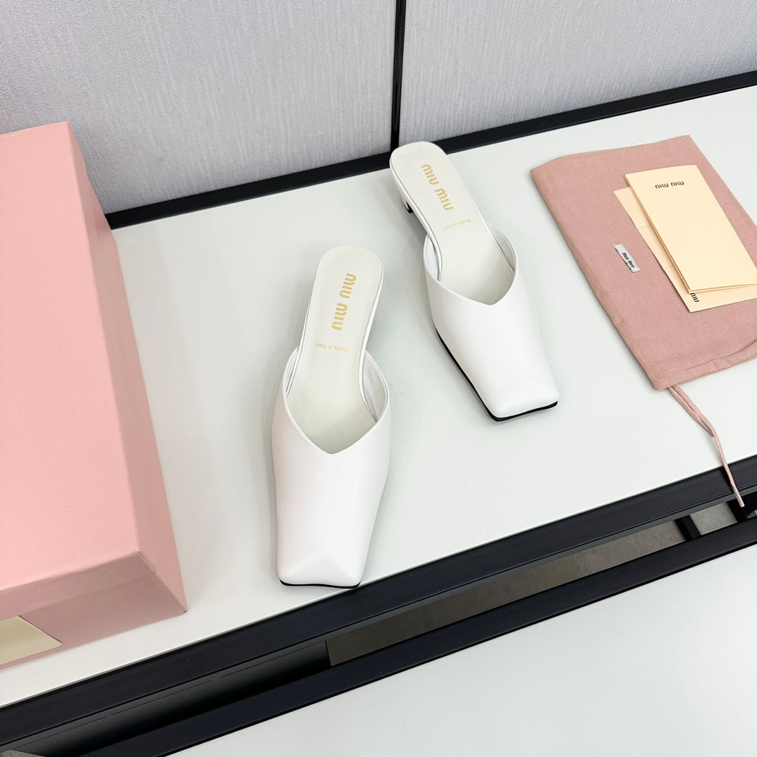 SQUARE TOE MULES WHITE SHEEPSKIN