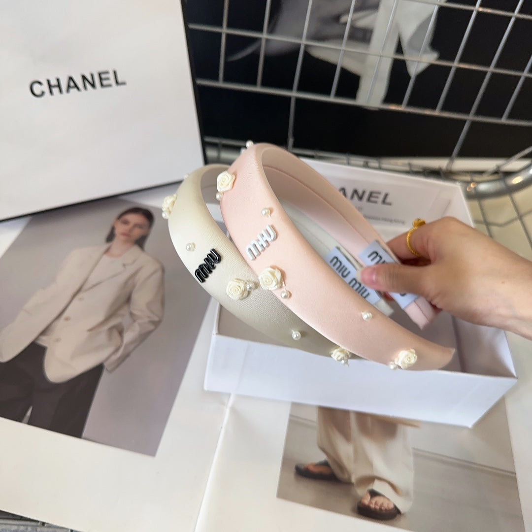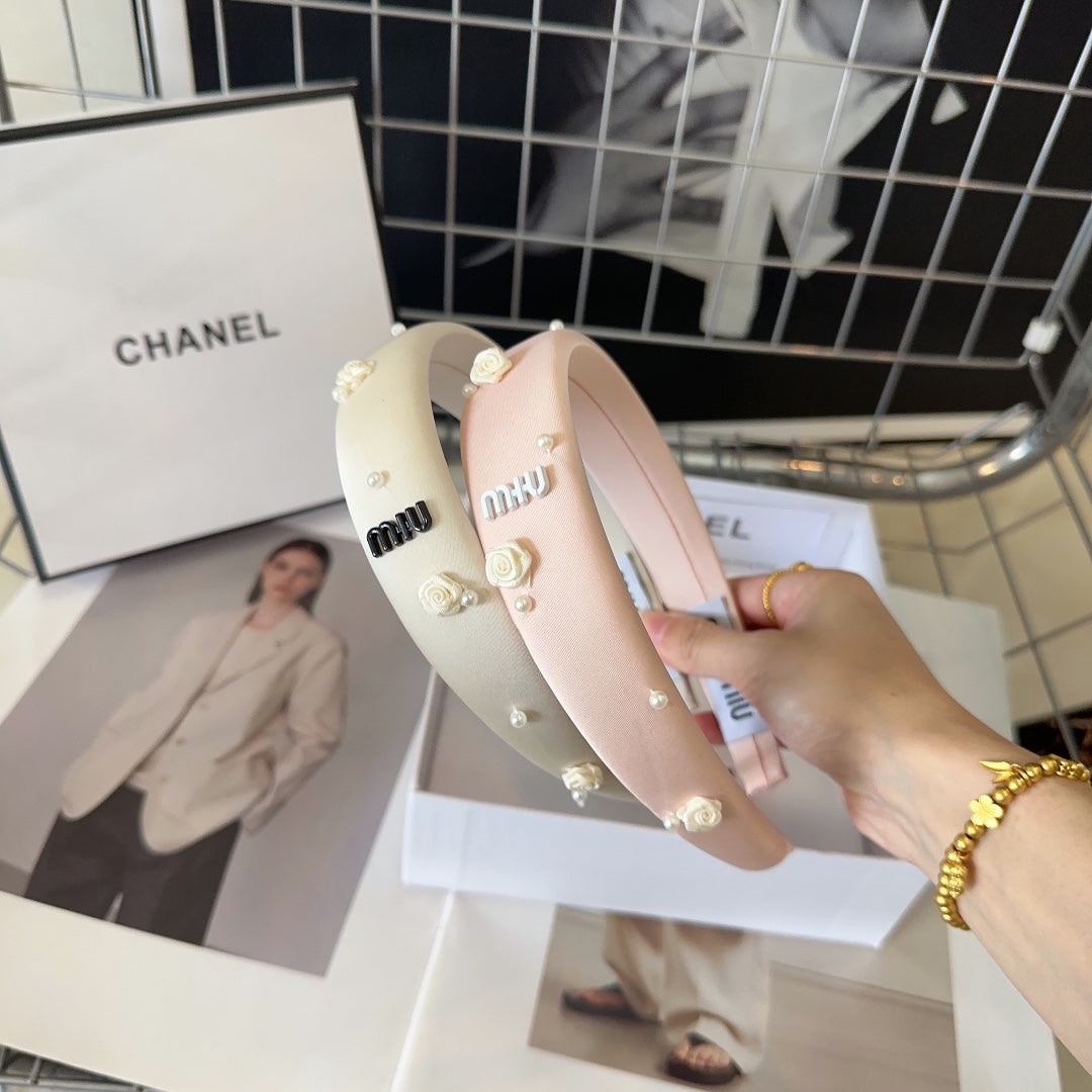 HEADBAND EMBELLISHED FLOWER AND PEARL IN LIGHT PINK SILK 194315