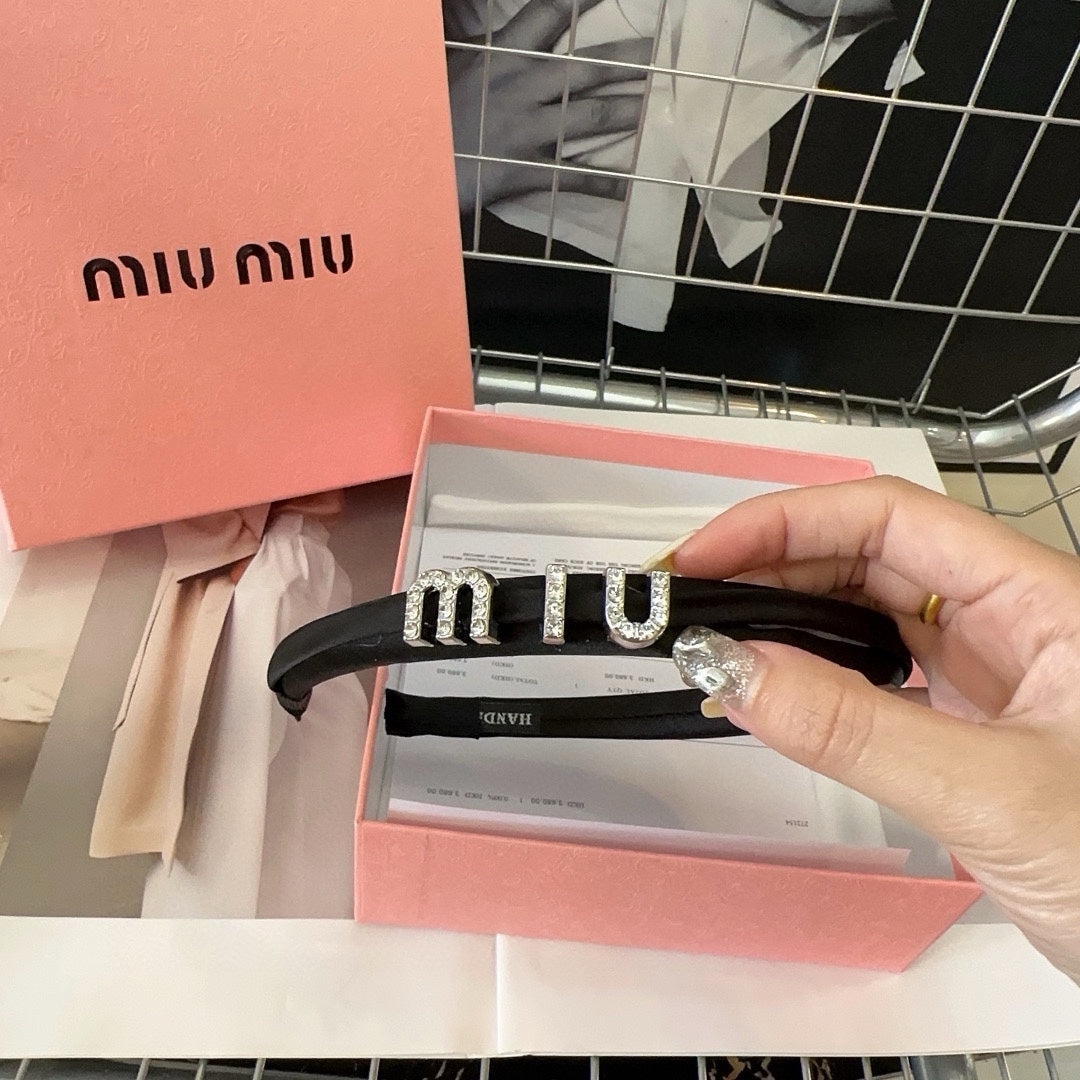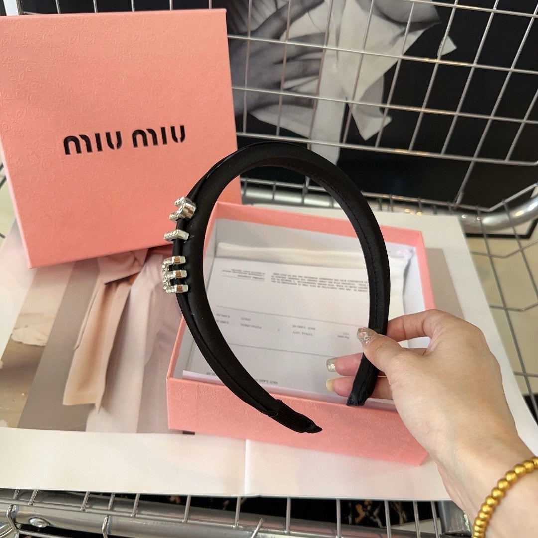 SILK HAIRBAND ATTACHED CRYSTAL LOGO BLACK 196475