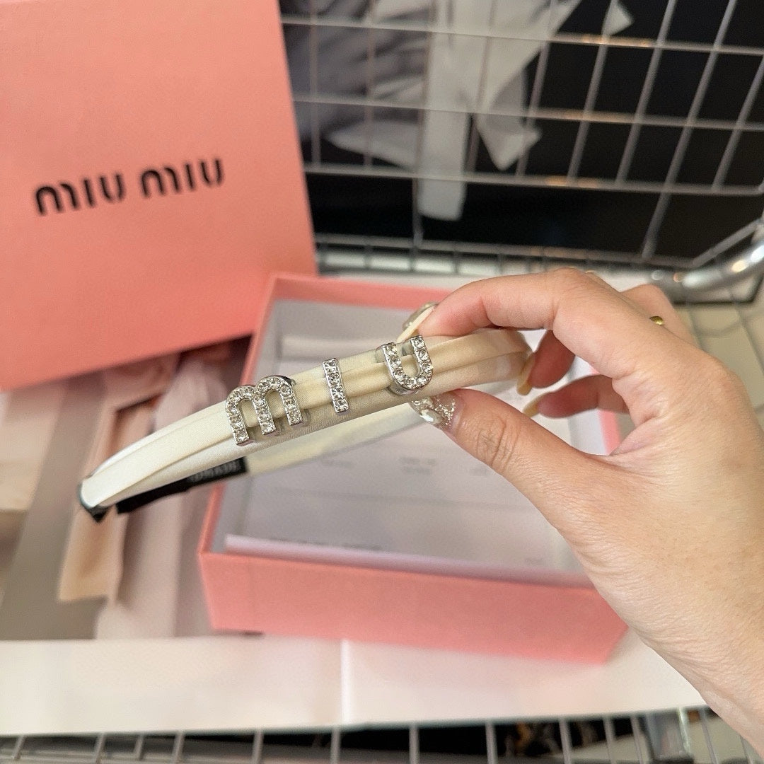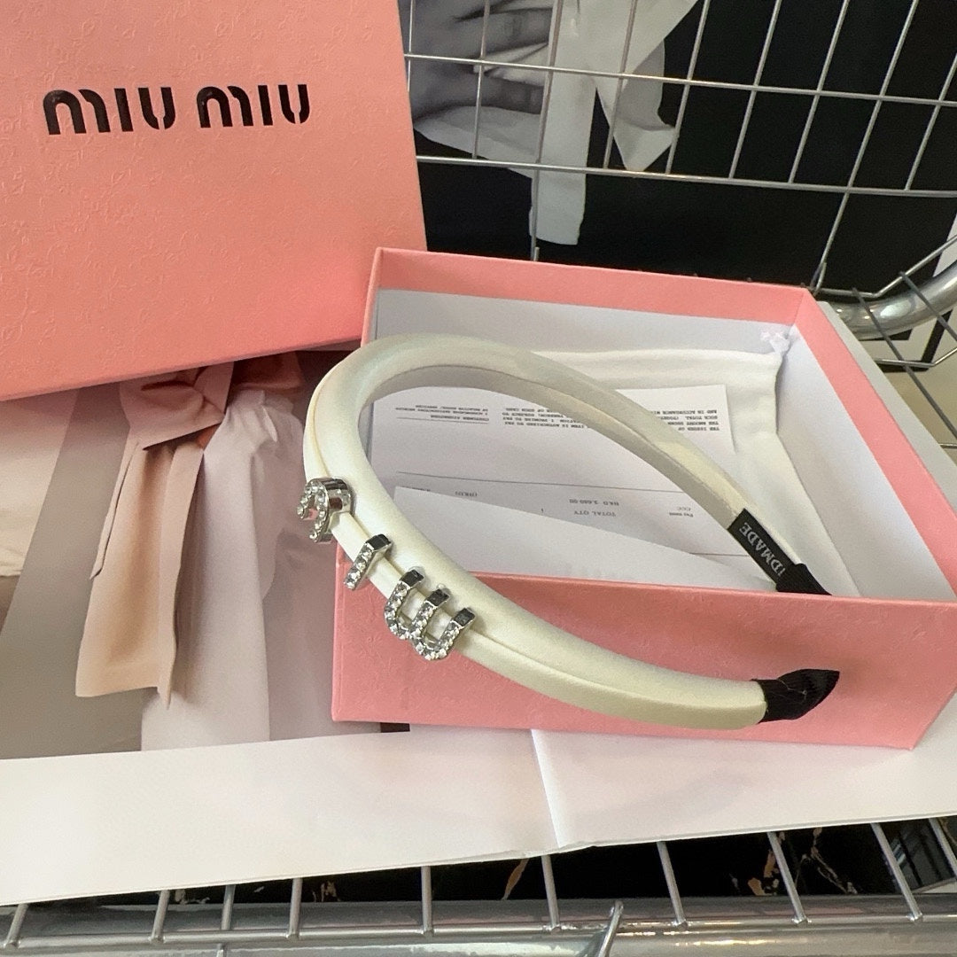 SILK HAIRBAND ATTACHED CRYSTAL LOGO WHITE 196475