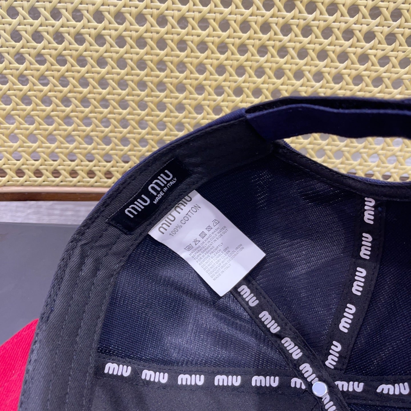 MM BASEBALL CAP IN NAVY BLUE AND RED FABRIC WITH LOGO EMBROIDERY