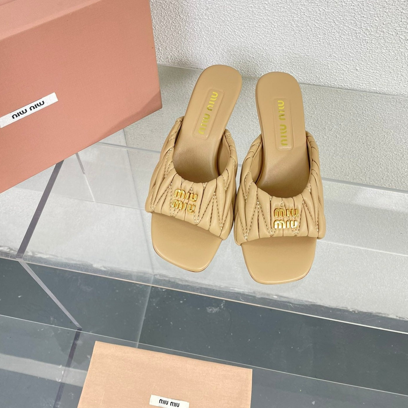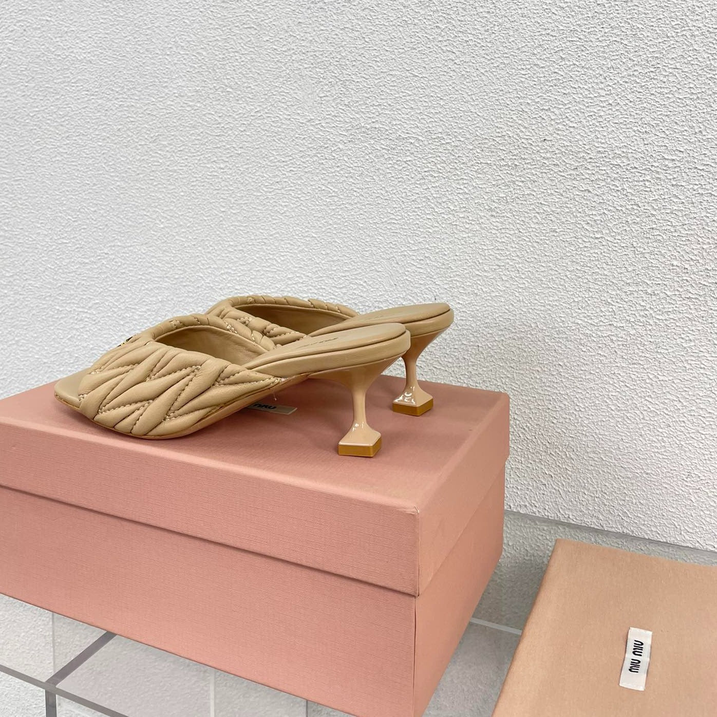 Women's Mid - Heel Apricot Leather Stylized