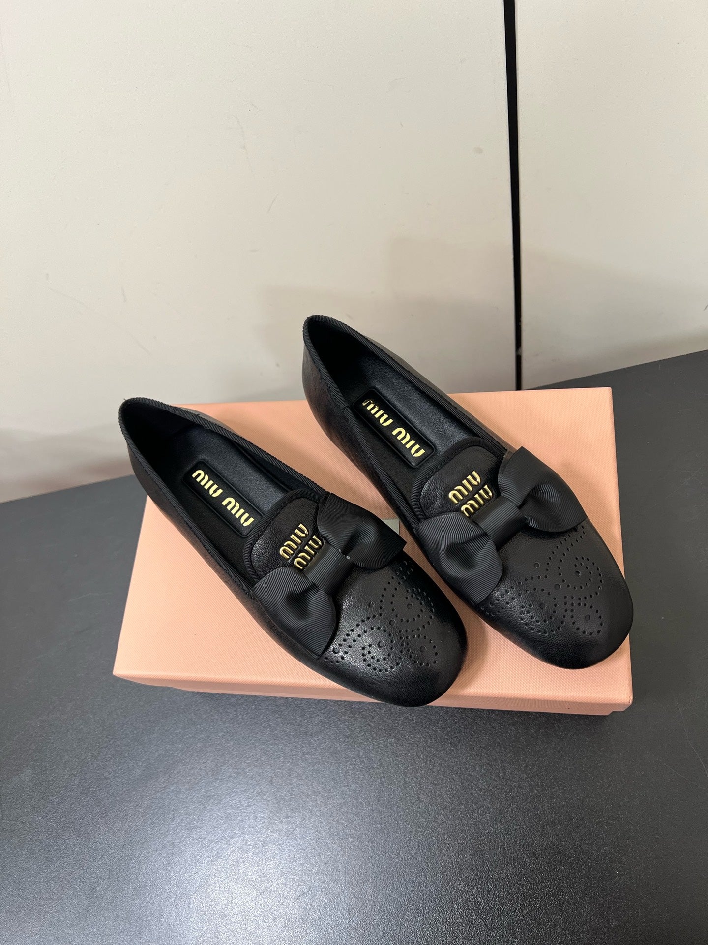 LOAFERS WITH BOW IN BLACK SHEEPSKIN