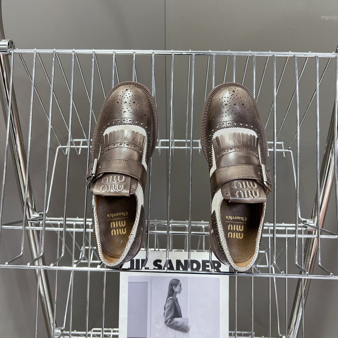 UNIQUE THICK-SOLED OXFORD SHOES BROWN MIX CREAM CALFSKIN