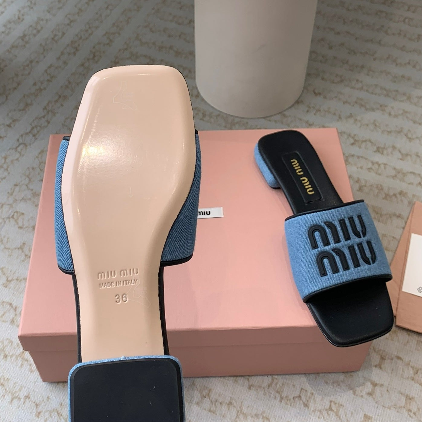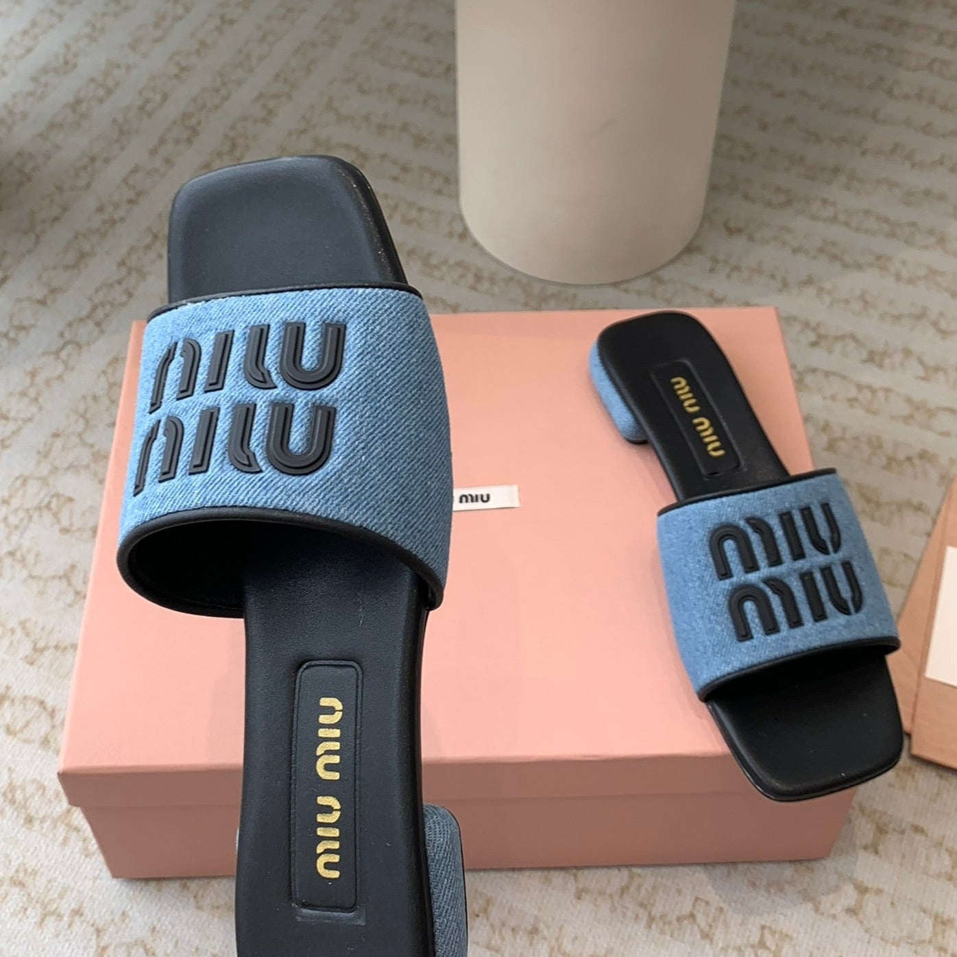 Women's Black Denim Slippers With Azure Blue Straps