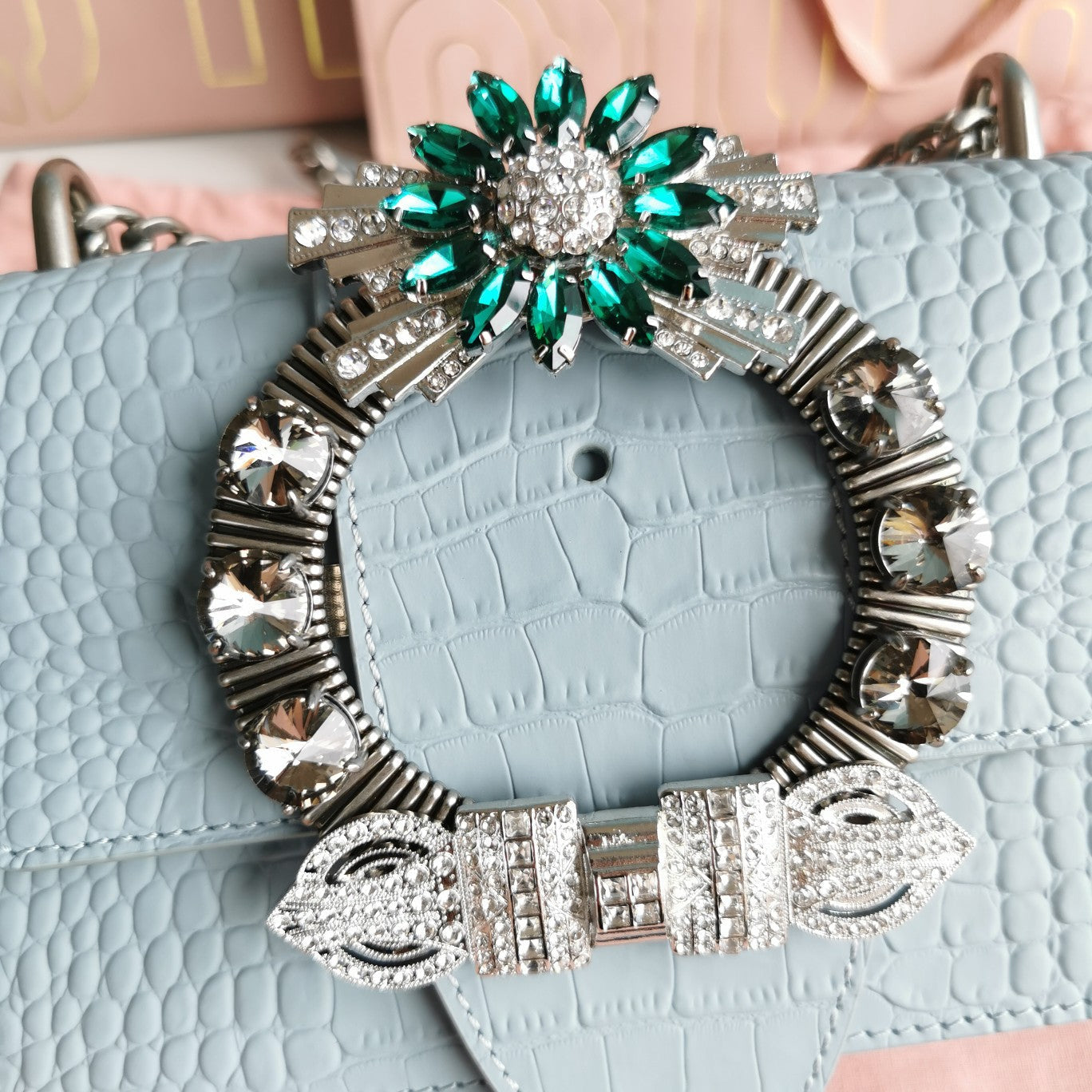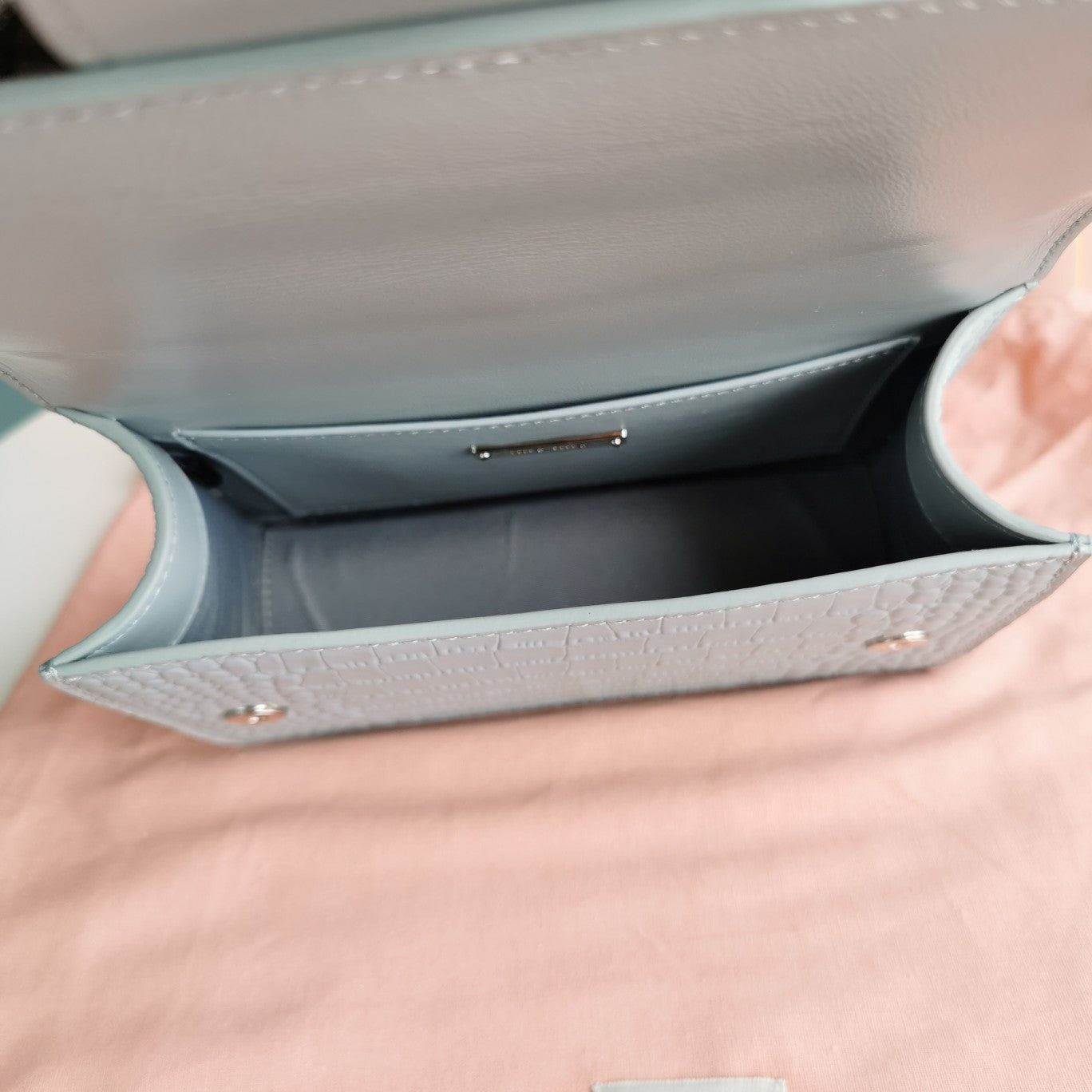 LADY 20 HANDBAG IN CROCODILE PATTERN BLUE PASTEL CALFSKIN