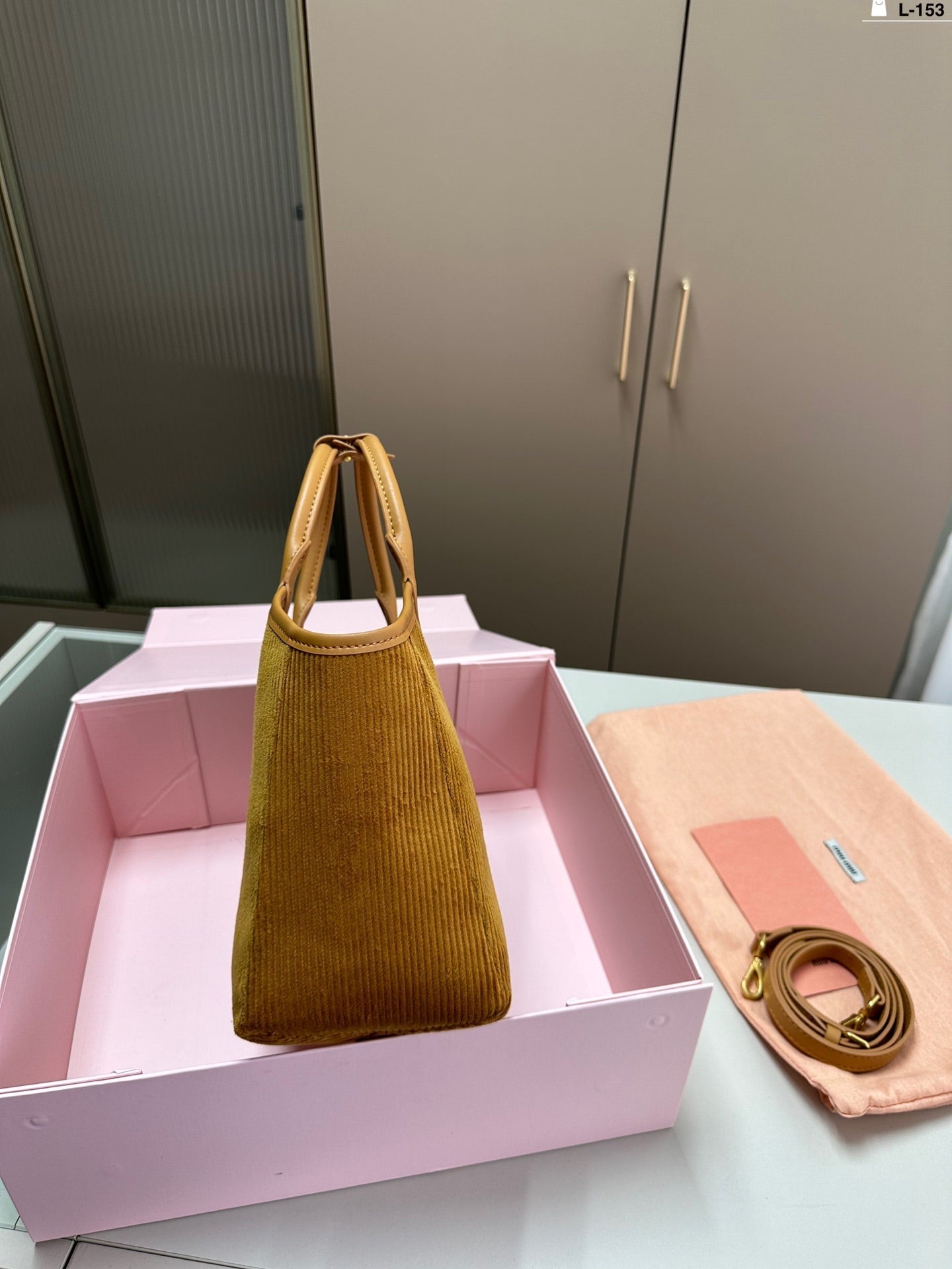 SMALL SHOPPING BAG 22 IN PEANUT BROWN CORDUROY