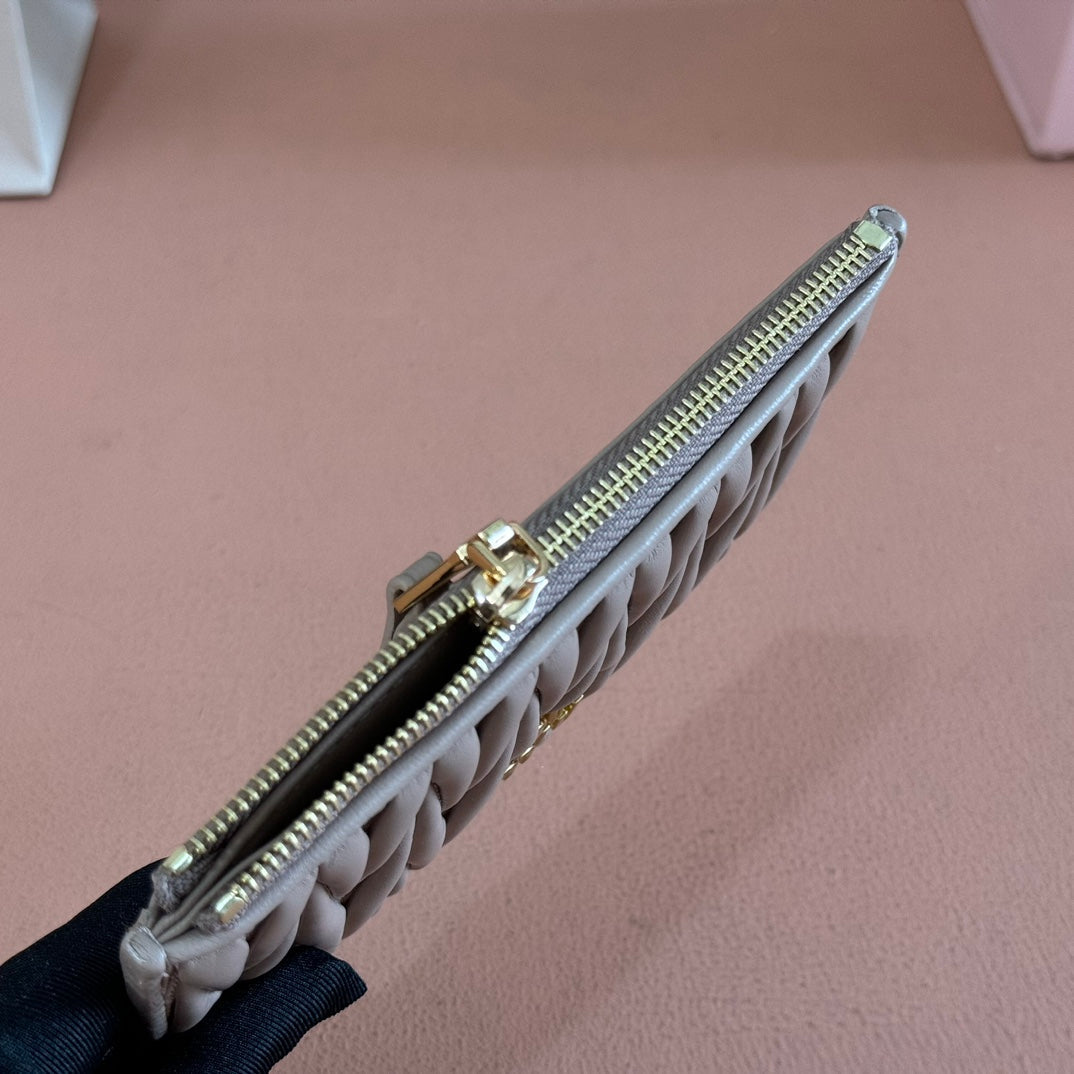 MATELASSÉ LEATHER ENVELOPE WALLET TAUPE GRAY