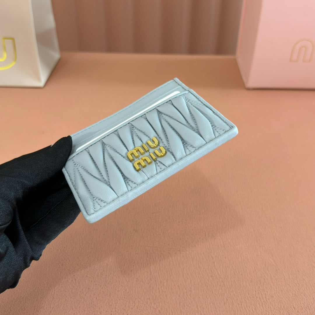 MATELASSÉ NAPPA LEATHER CARD HOLDER BLUE GRAY