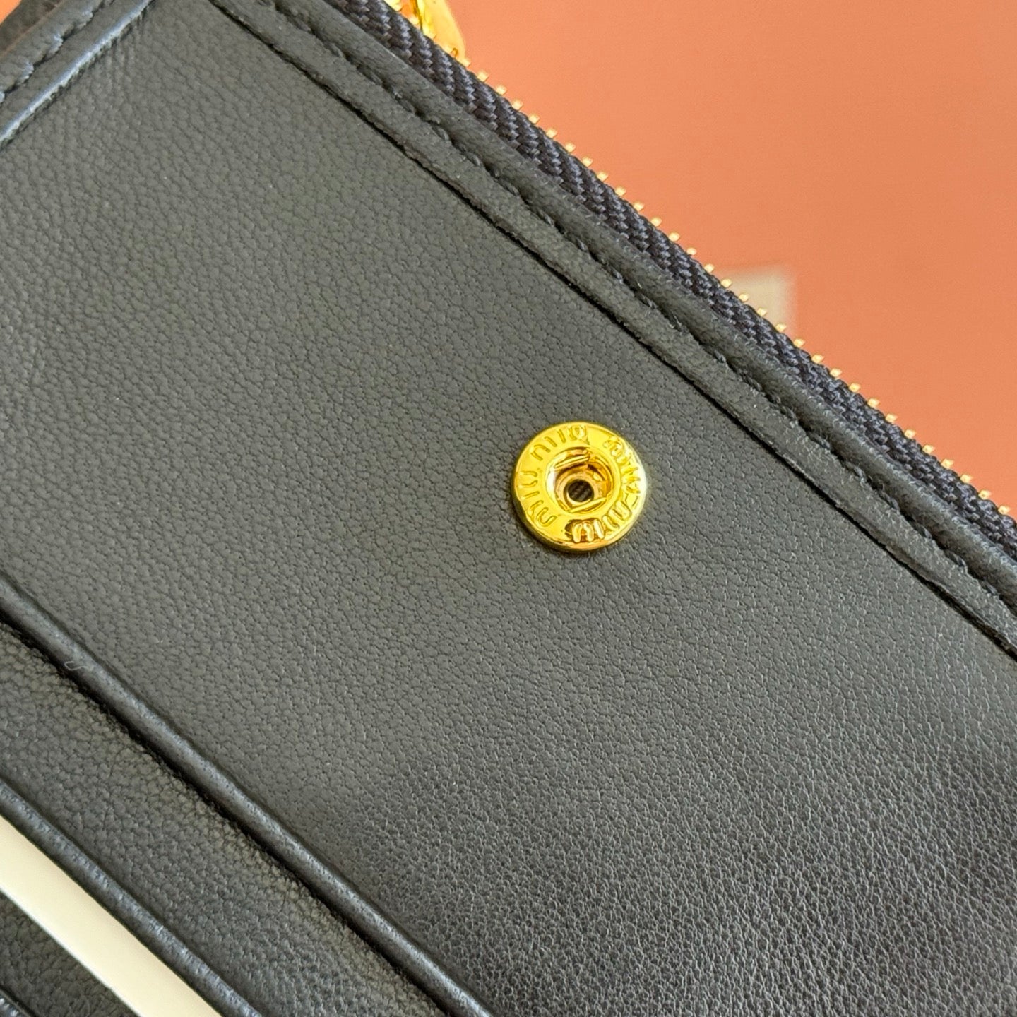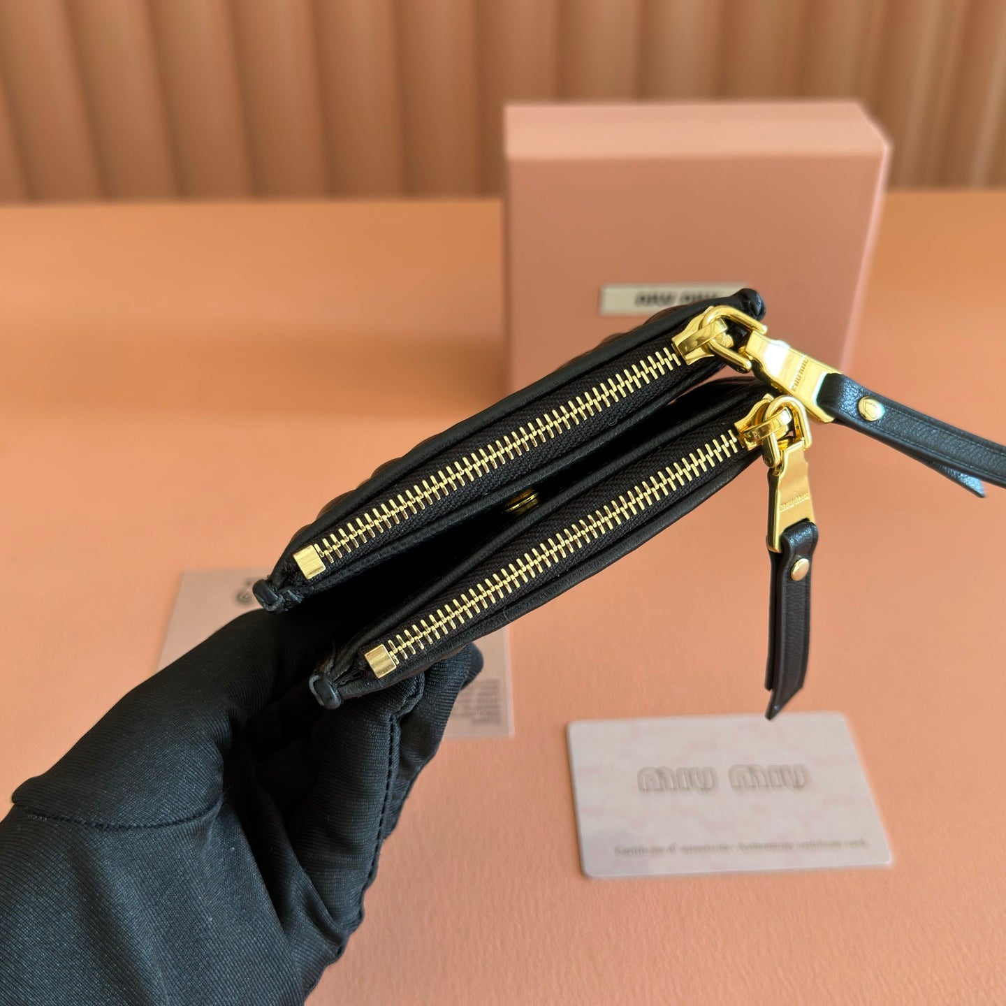 MIUMIU 26S SMALL MATELASSE CARD HOLDER 11 IN BLACK CALFSKIN GOLD HARDWARE