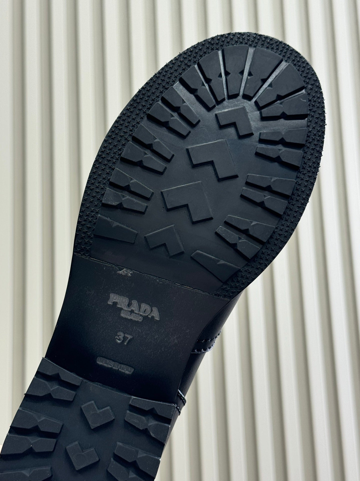 PRADA 25S ANKLE BOOTS IN DARK BLACK BROWN CALFSKIN