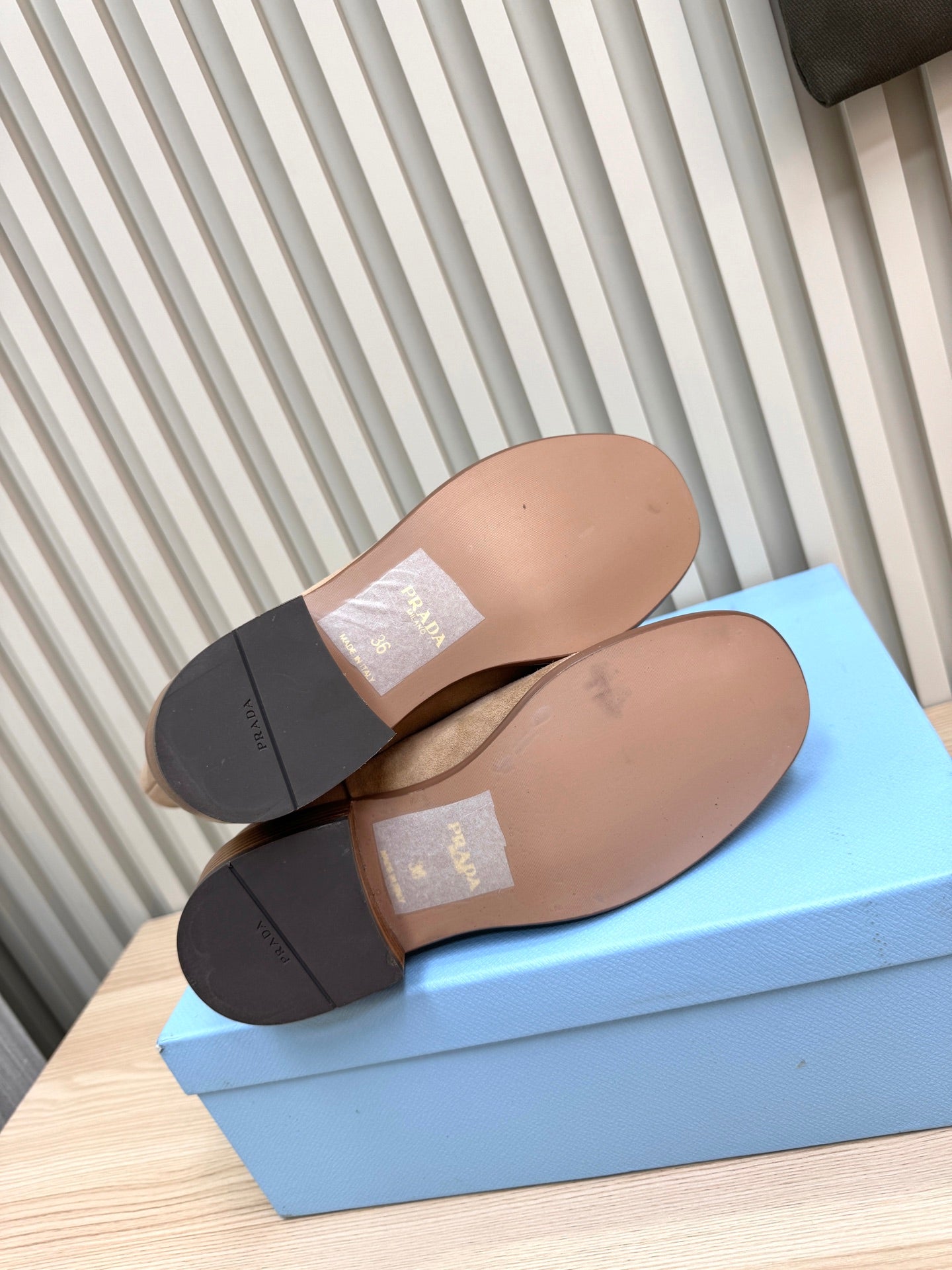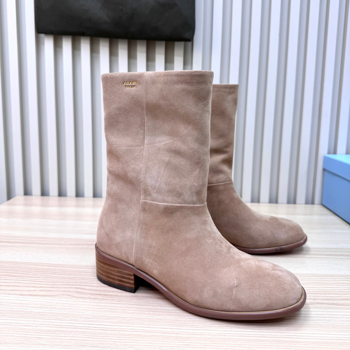 PRADA 25S LOW-CUT BOOTS IN LIGHT CARAMEL BROWN SUEDE