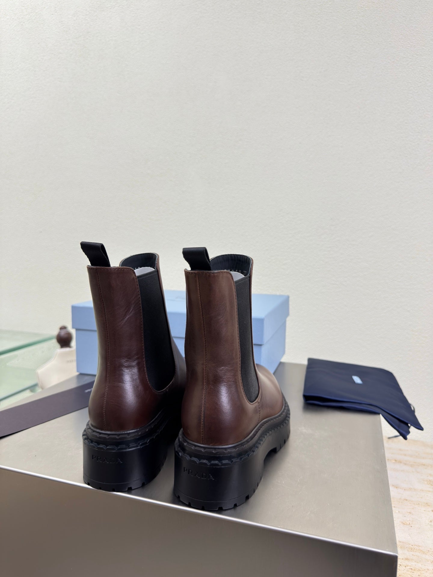 PRADA 25S PLATFORM CHELSEA BOOTS IN DARK BROWN CALFSKIN