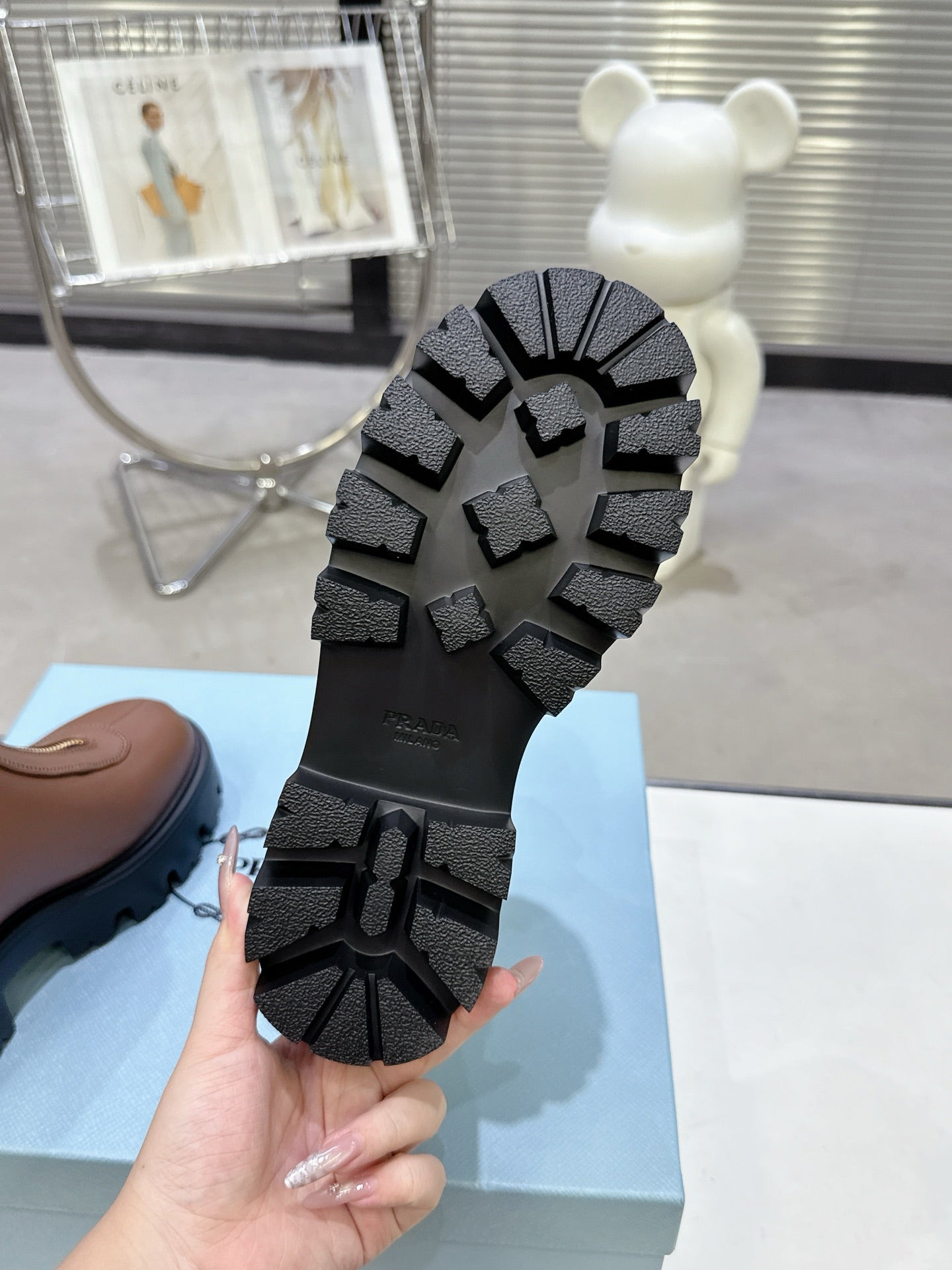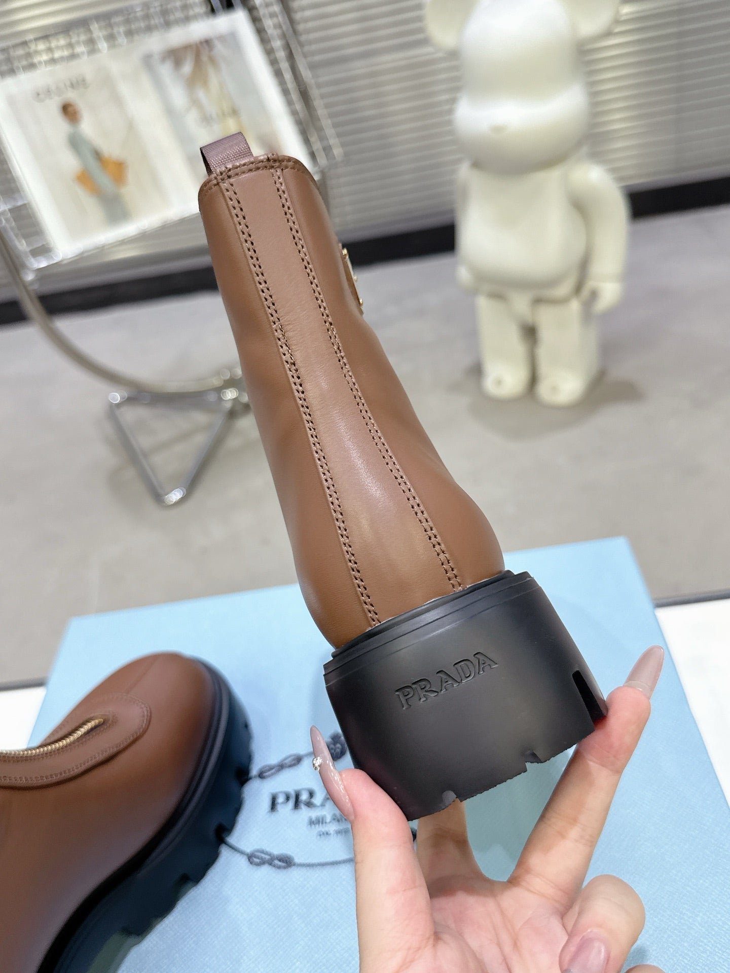 PRADA 25S ZIP-UP ANKLE BOOTS IN BROWN CALFSKIN
